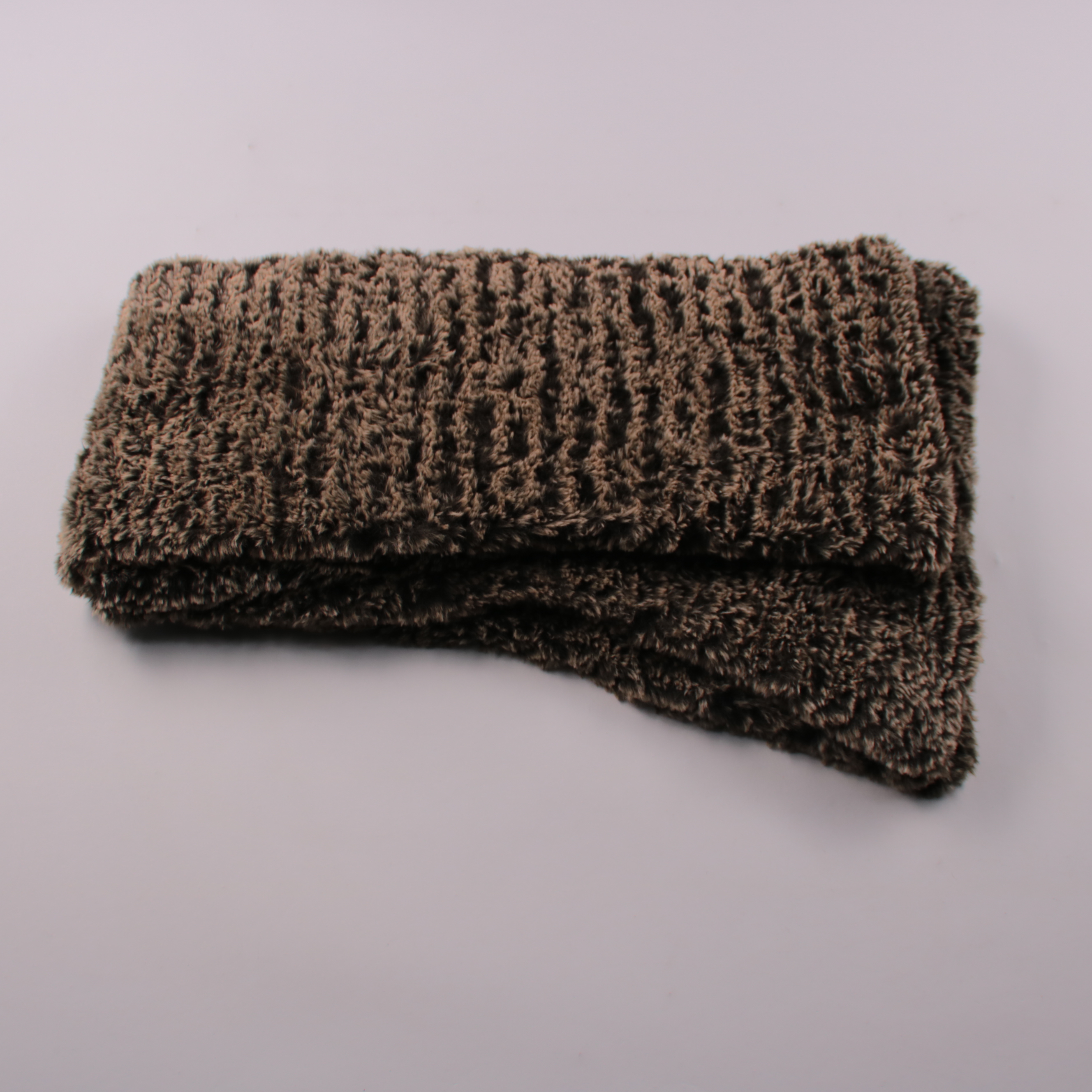 Мягкий пушистый шарф тёмно-коричневого цвета без заметного бренда. Подойдёт для зимних прогулок и повседневной носки, хорошо закрывает шею от ветра. Материал приятный на ощупь и легко сочетается с верхней одеждой в нейтральных оттенках.
