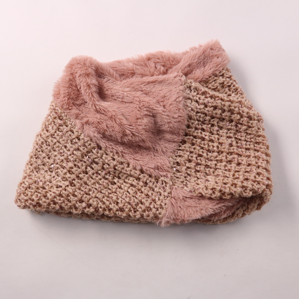 Вязаный шарф-снуд с мягкой меховой подкладкой, без указания бренда. Подойдёт для зимних прогулок и повседневных образов, хорошо закрывает шею от ветра. Удобен тем, что не развязывается и быстро надевается через голову.