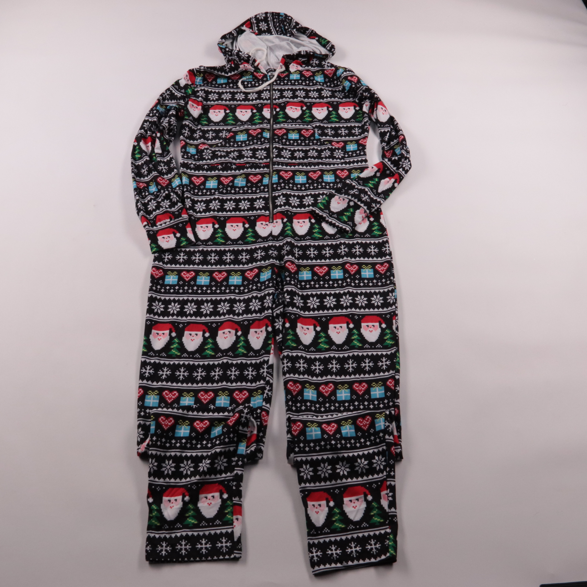 Комбинезон SHEIN из мягкого эластичного материала с капюшоном и молнией, с новогодним принтом (Санта, снежинки, подарки). Подойдёт для дома, сна или уютных зимних вечеров и фотосессий. Практичное преимущество — легко надевать и снимать благодаря застёж...