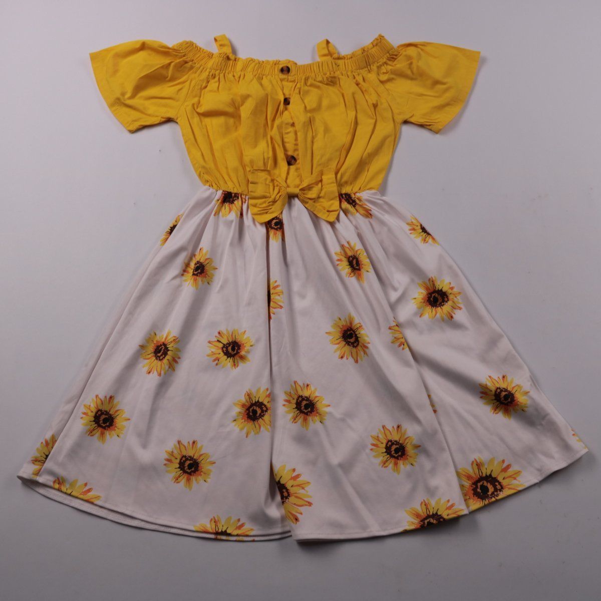 Летнее платье Shein с открытыми плечами и пышной юбкой с принтом подсолнухов. Подойдёт для прогулок и поездок в тёплую погоду, мягкая резинка по верху держит посадку. Ткань лёгкая и быстро сохнет после стирки.