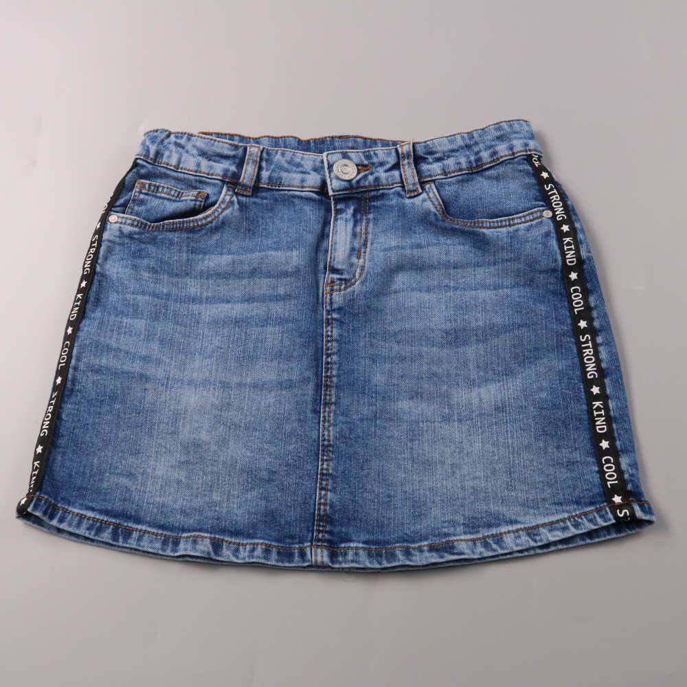 Джинсовая юбка C&A синего цвета с декоративными лампасами по бокам. Подойдёт для школы и повседневных прогулок, легко сочетается с футболками и свитшотами. Плотный деним с небольшим добавлением эластана лучше садится по фигуре и не стесняет движения.
