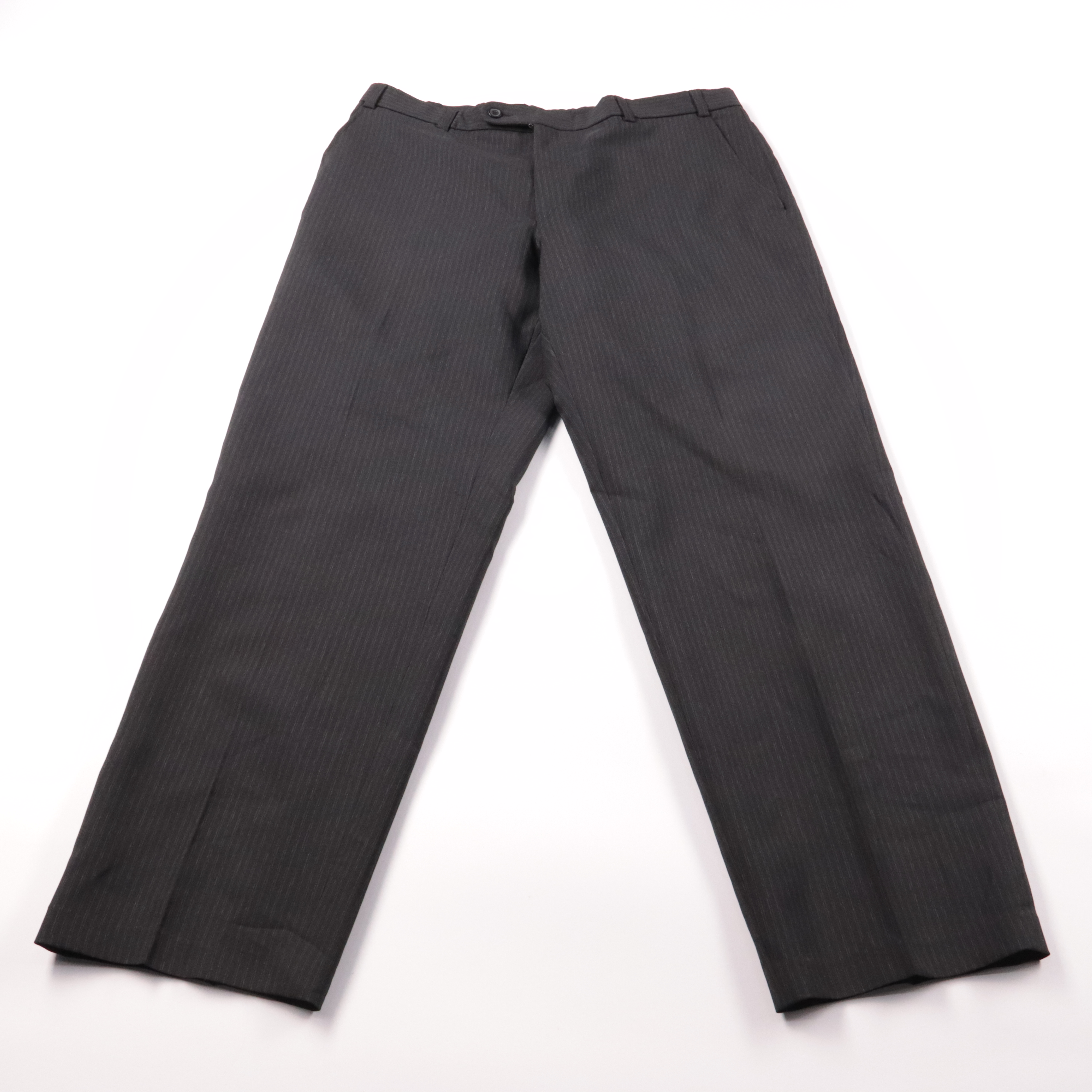 Мужские классические брюки Angelo Litrico тёмно-серого цвета в тонкую полоску, прямого кроя. Подойдут для офиса, деловых встреч и торжественных случаев — легко сочетаются с рубашкой и пиджаком. Практичный материал из 100% полиэстера меньше мнётся и про...