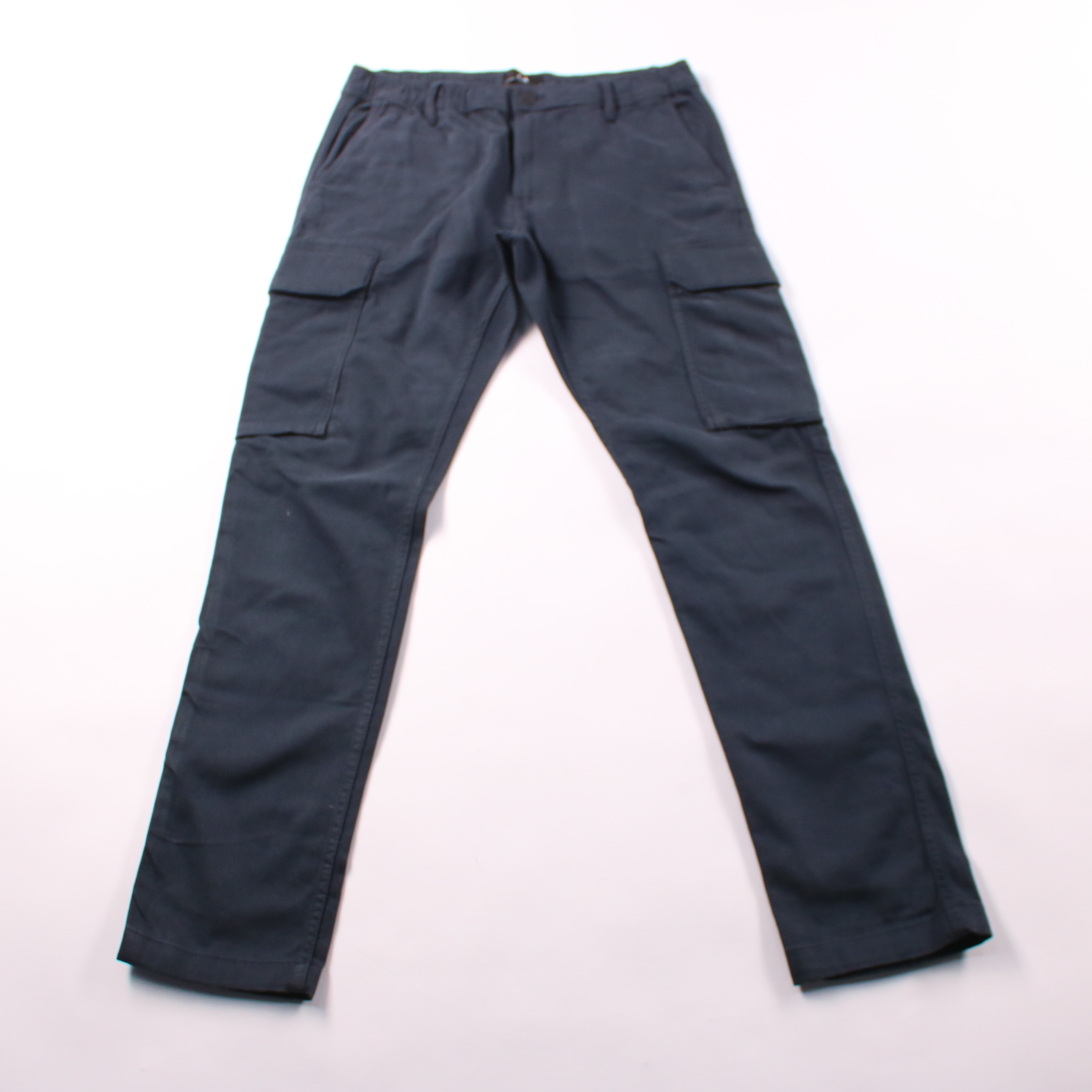 Мужские брюки-карго C&A тёмно-синего цвета с накладными боковыми карманами. Подойдут для повседневной носки и поездок, когда нужно взять мелочи с собой. Плотная ткань держит форму и удобна в уходе.