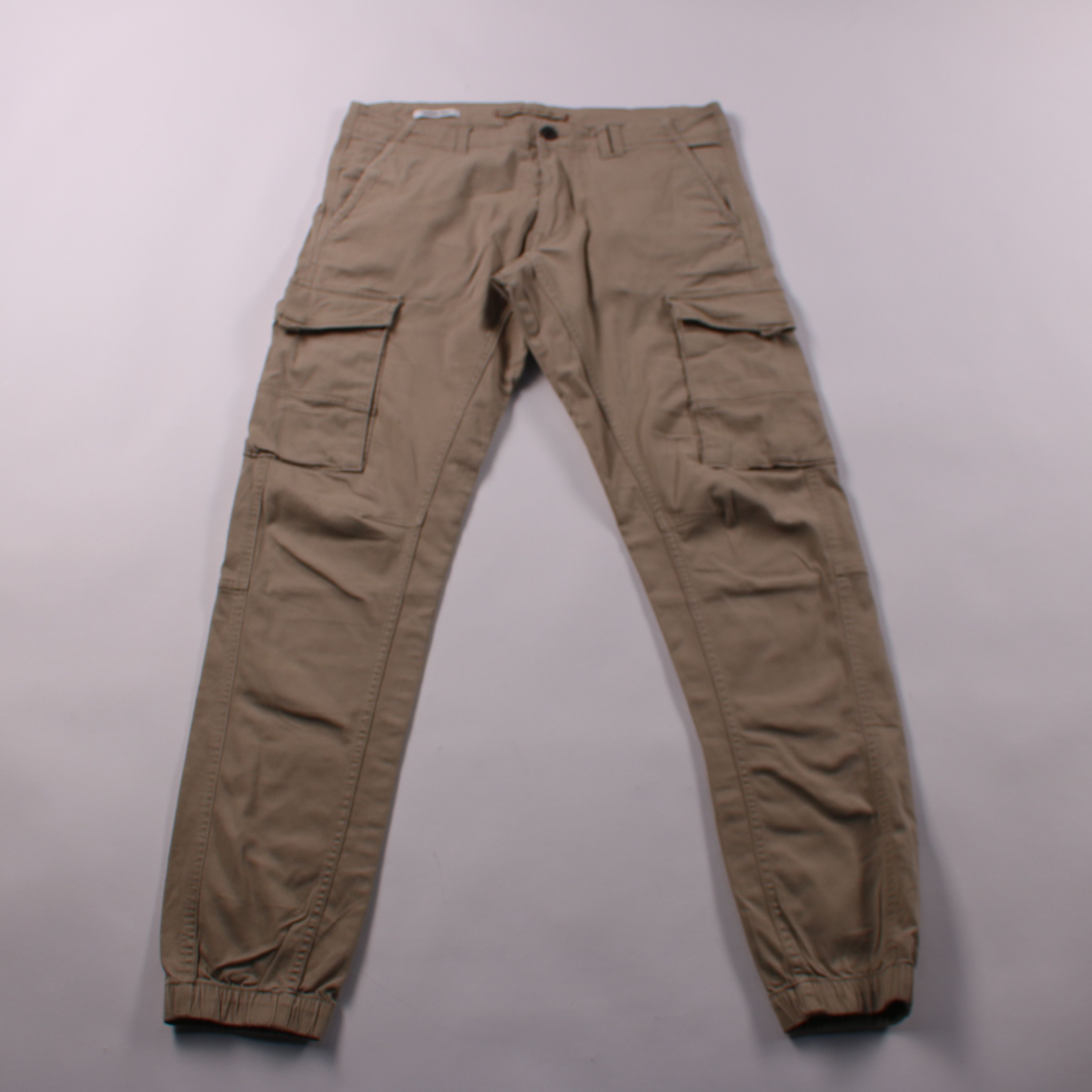 Бежевые карго-брюки Jack & Jones с накладными боковыми карманами и манжетами по низу. Подойдут для повседневной носки и прогулок в городе, хорошо сочетаются с кроссовками и худи. Плотный хлопковый твил практичен и износостойкий, карманы удобно использо...