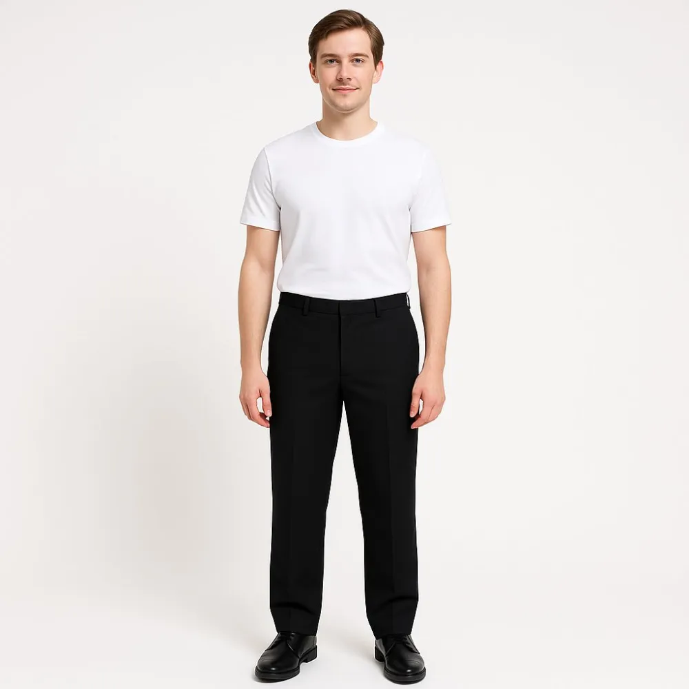 Мужские классические брюки Holland Casino в чёрном цвете, прямого кроя со стрелками. Подойдут для офиса и официальных мероприятий, легко сочетаются с рубашкой и пиджаком. Плотная ткань с добавлением эластана комфортно сидит и меньше мнётся.
