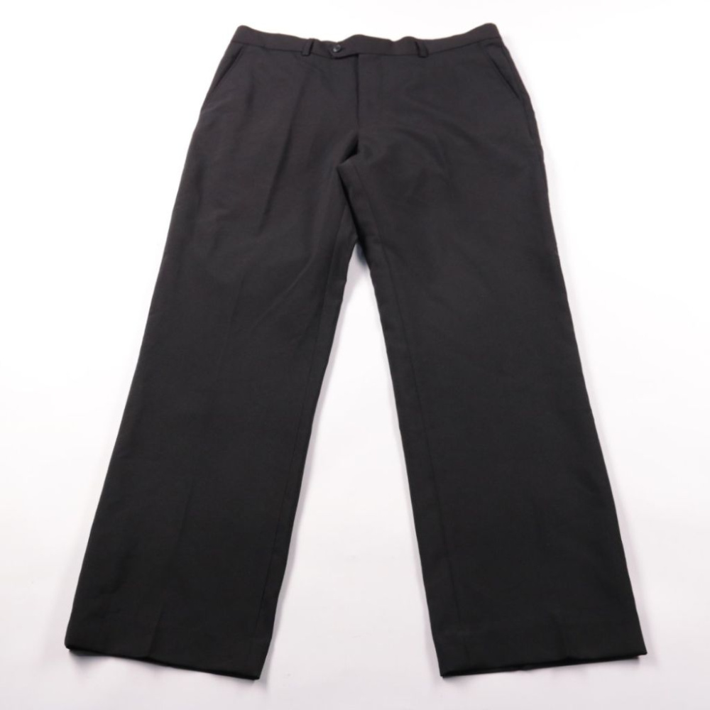 Мужские классические брюки F&F чёрного цвета с прямыми штанинами и стрелками. Подойдут для офиса и строгих образов, легко сочетаются с рубашкой и пиджаком. Практичный плюс — материал из полиэстера меньше мнётся и проще в уходе.