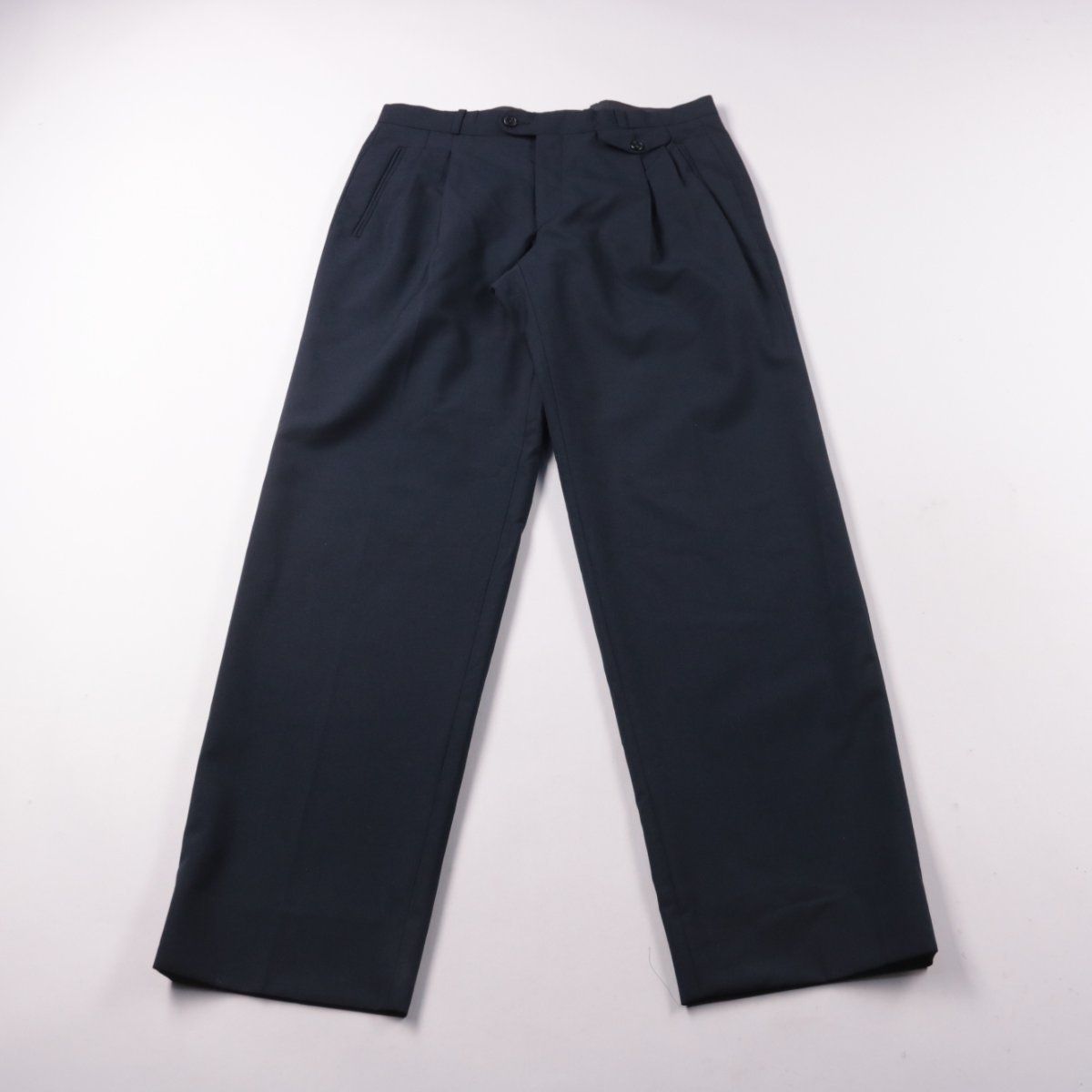 Классические мужские брюки прямого кроя из смесовой шерсти, цвет чёрный. Подойдут для офиса, деловых встреч и торжественных мероприятий благодаря строгому силуэту и защипам у пояса. Вискозная подкладка делает посадку комфортнее и снижает электризацию ткани.