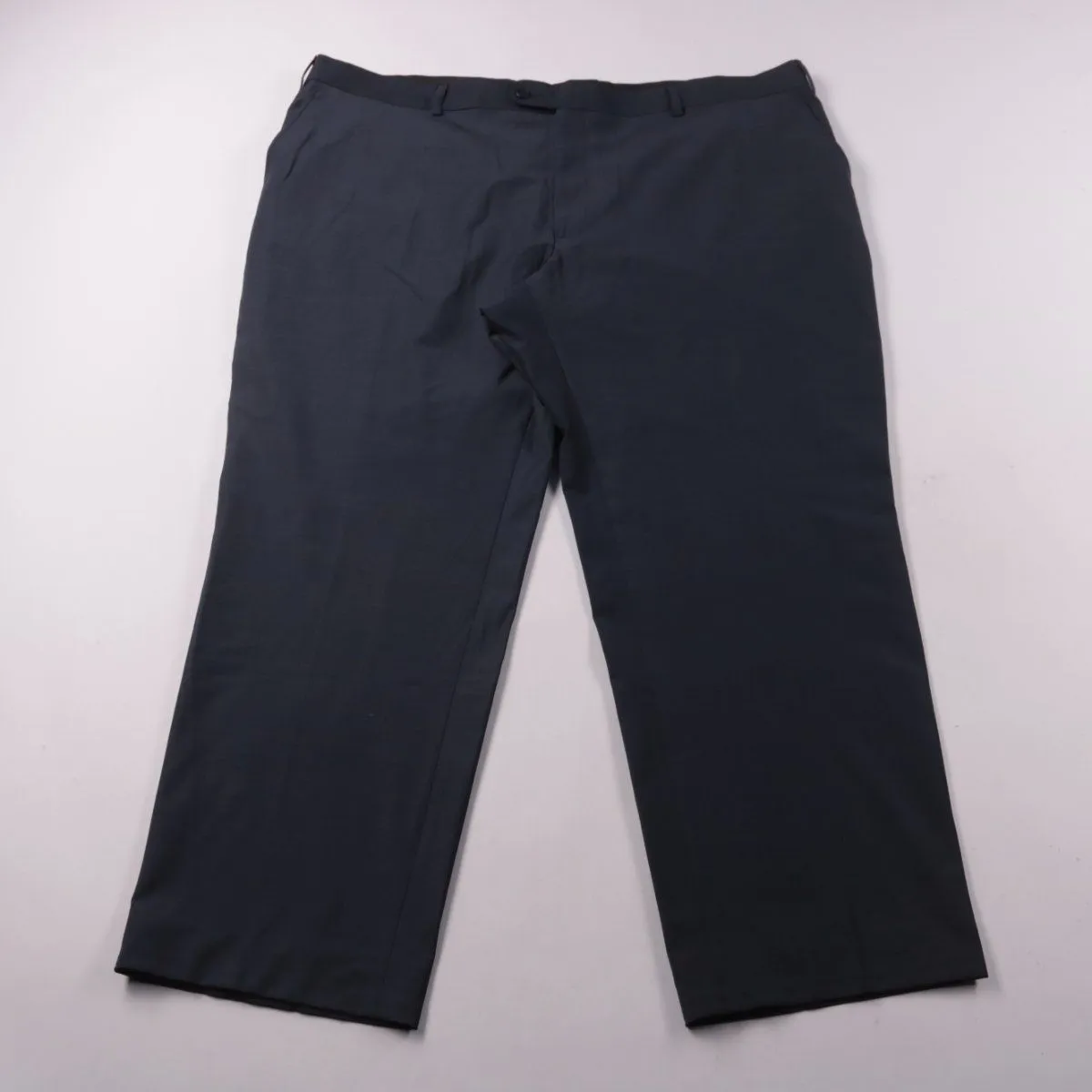 Мужские классические брюки тёмного цвета, выполнены из смесовой ткани с шерстью и добавлением эластана. Подойдут для офиса и повседневной носки в прохладную или умеренную погоду. Материал немного тянется и комфортно садится по талии.