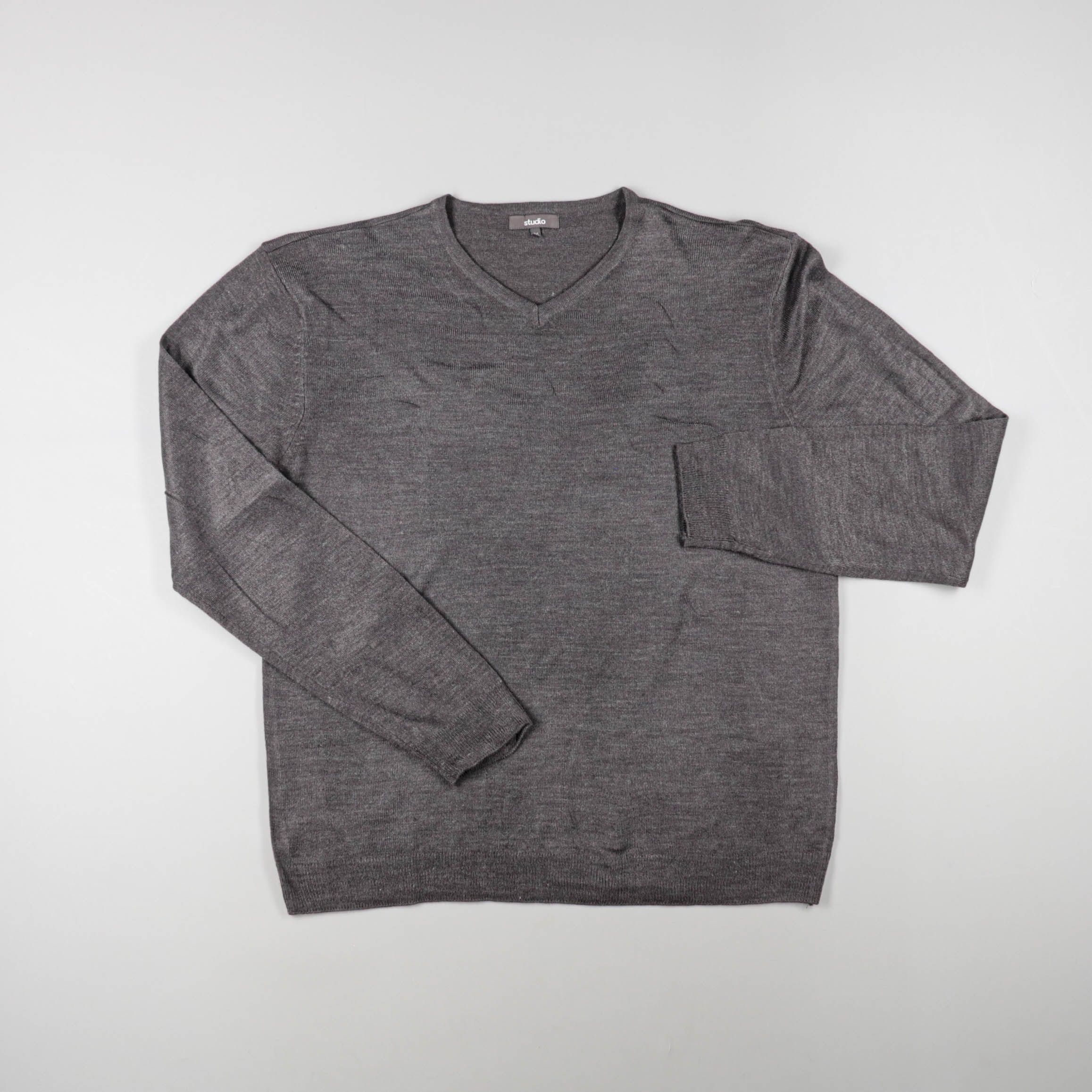 Мужской джемпер Studio серого цвета с V‑образным вырезом и тонкой вязкой. Подойдёт для офиса и повседневных образов, удобно носить как самостоятельный слой или под пиджак. Лёгкий материал хорошо дышит и не стесняет движения.