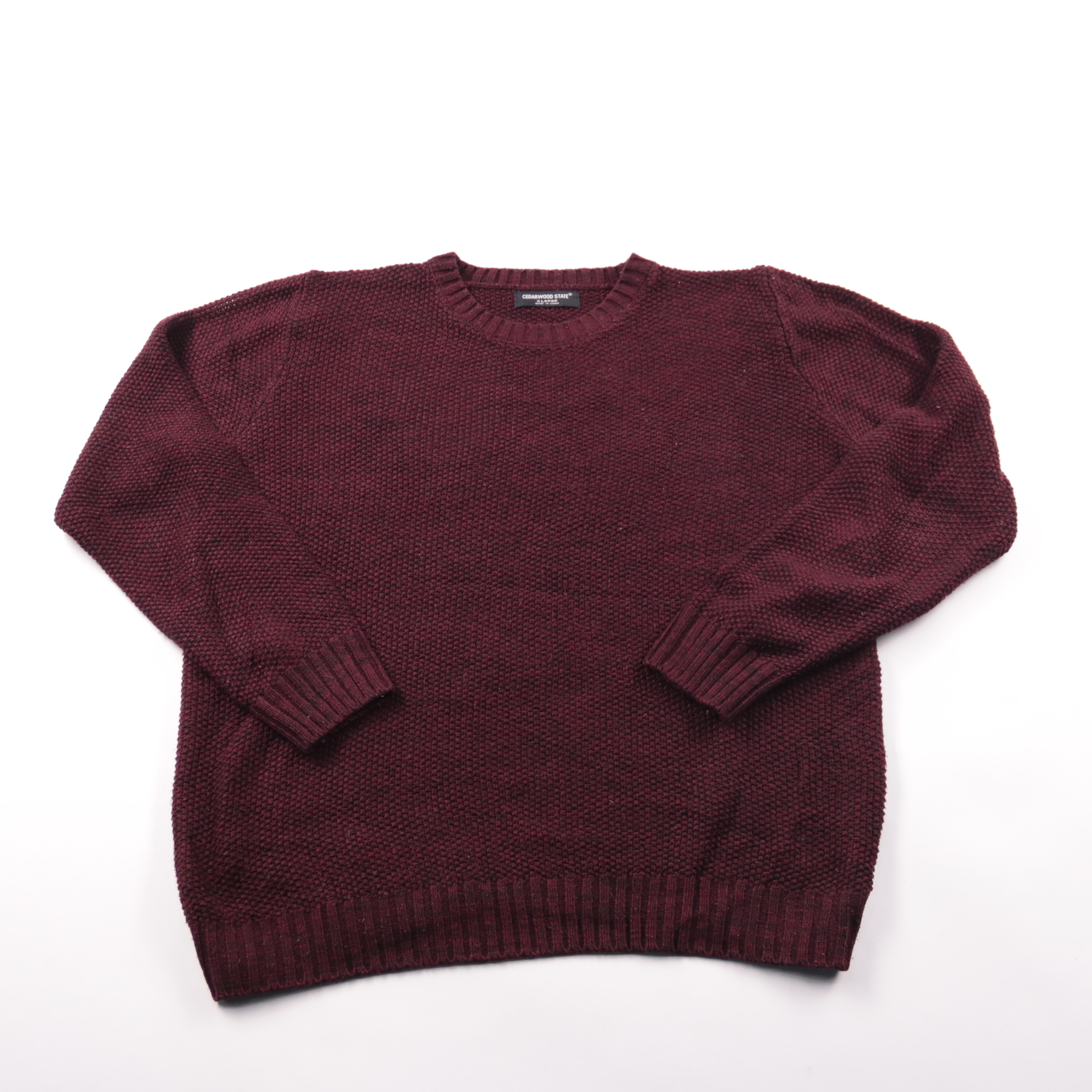 Мужской джемпер Cedarwood State бордового цвета с фактурной вязкой и круглым вырезом. Подойдёт для повседневных образов в прохладную погоду, хорошо смотрится с джинсами или чиносами. Практичный плюс — плотная вязка и манжеты/низ в резинку держат форму ...