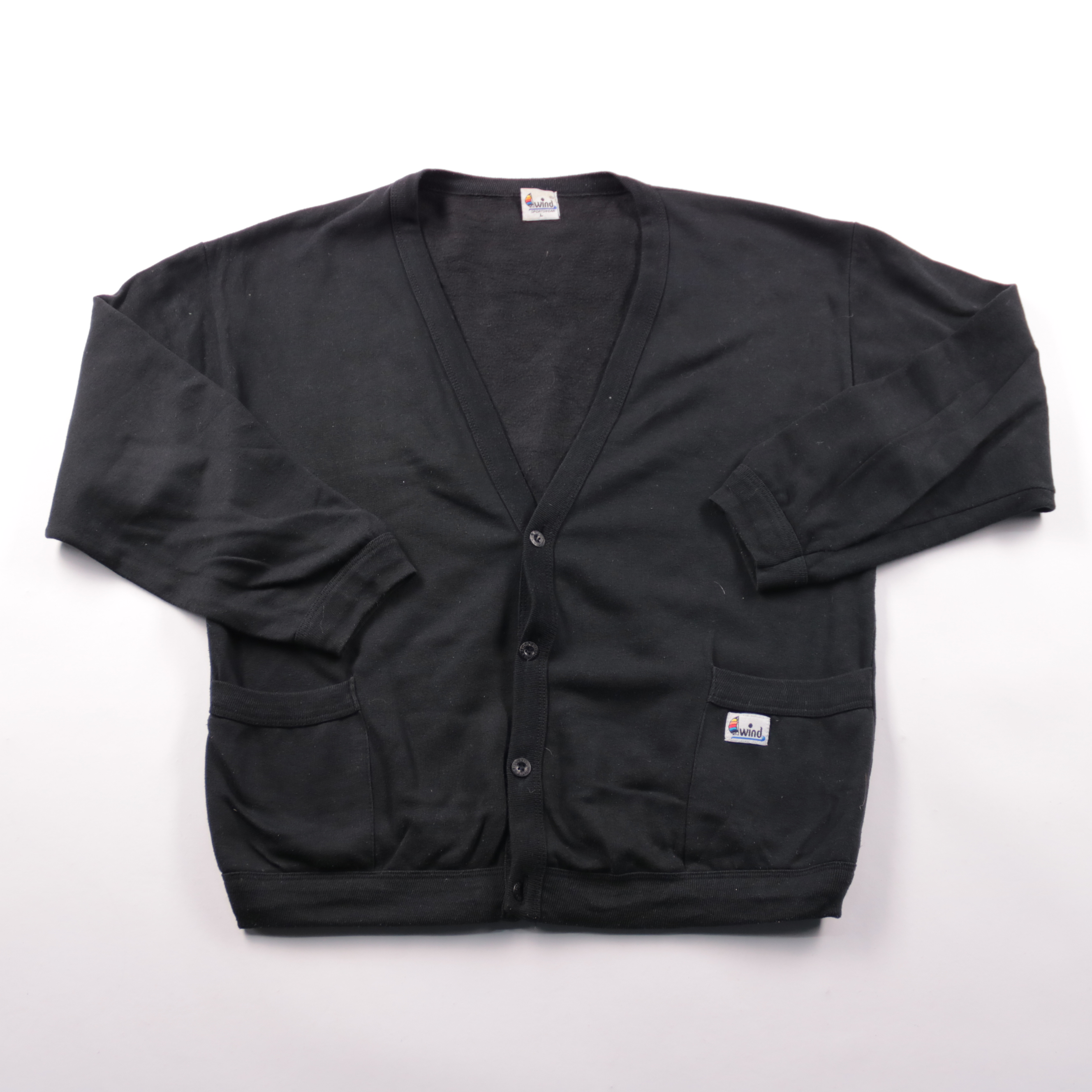 Мужской чёрный кардиган Wind Sportswear на пуговицах, с V-образным вырезом и двумя карманами. Подойдёт для повседневной носки и офиса в прохладную погоду как второй слой поверх футболки или рубашки. Практичный вариант: ткань с добавлением полиэстера ме...