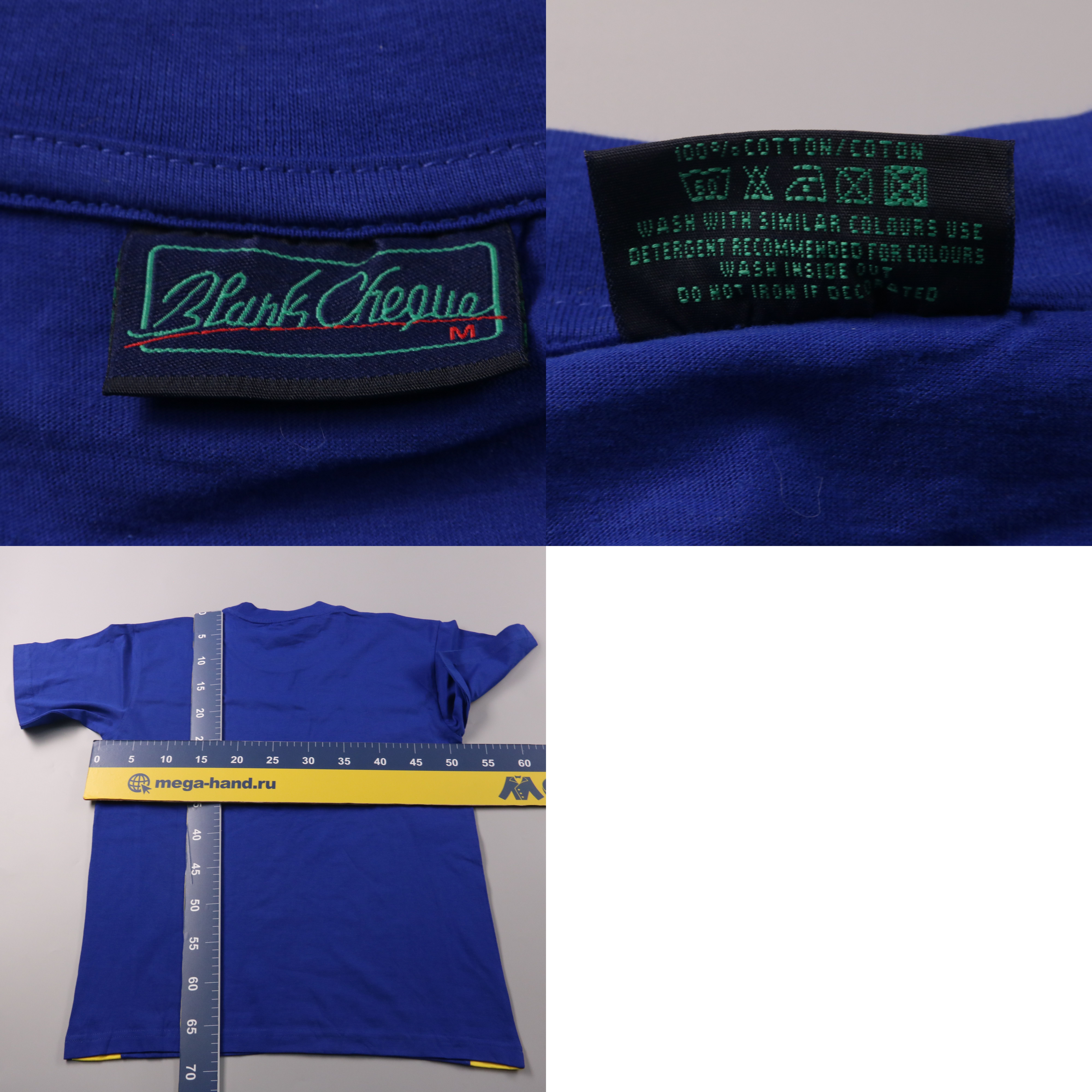Мужская футболка Blank Cheque синего цвета с контрастными жёлтыми вставками по бокам и небольшими логотипами на груди. Подойдёт для повседневной носки, тренировок и активного отдыха. Натуральный хлопок хорошо дышит и комфортен в течение дня.