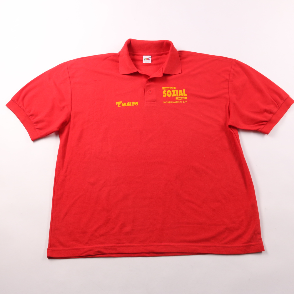 Мужское поло Fruit of the Loom красного цвета с вышивкой Team и принтом на груди/спине. Подойдёт для повседневной носки, работы или мероприятий в тёплую погоду и в помещении. Смесовая ткань (хлопок с полиэстером) практична в уходе и меньше мнётся.