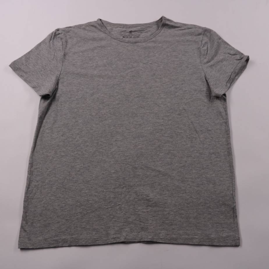 Серая базовая футболка без принта, мягкая и слегка тянется за счёт эластана. Подойдёт на каждый день, для города, дома или как слой под худи/куртку. Практична в уходе и легко сочетается с джинсами и спортивными брюками.