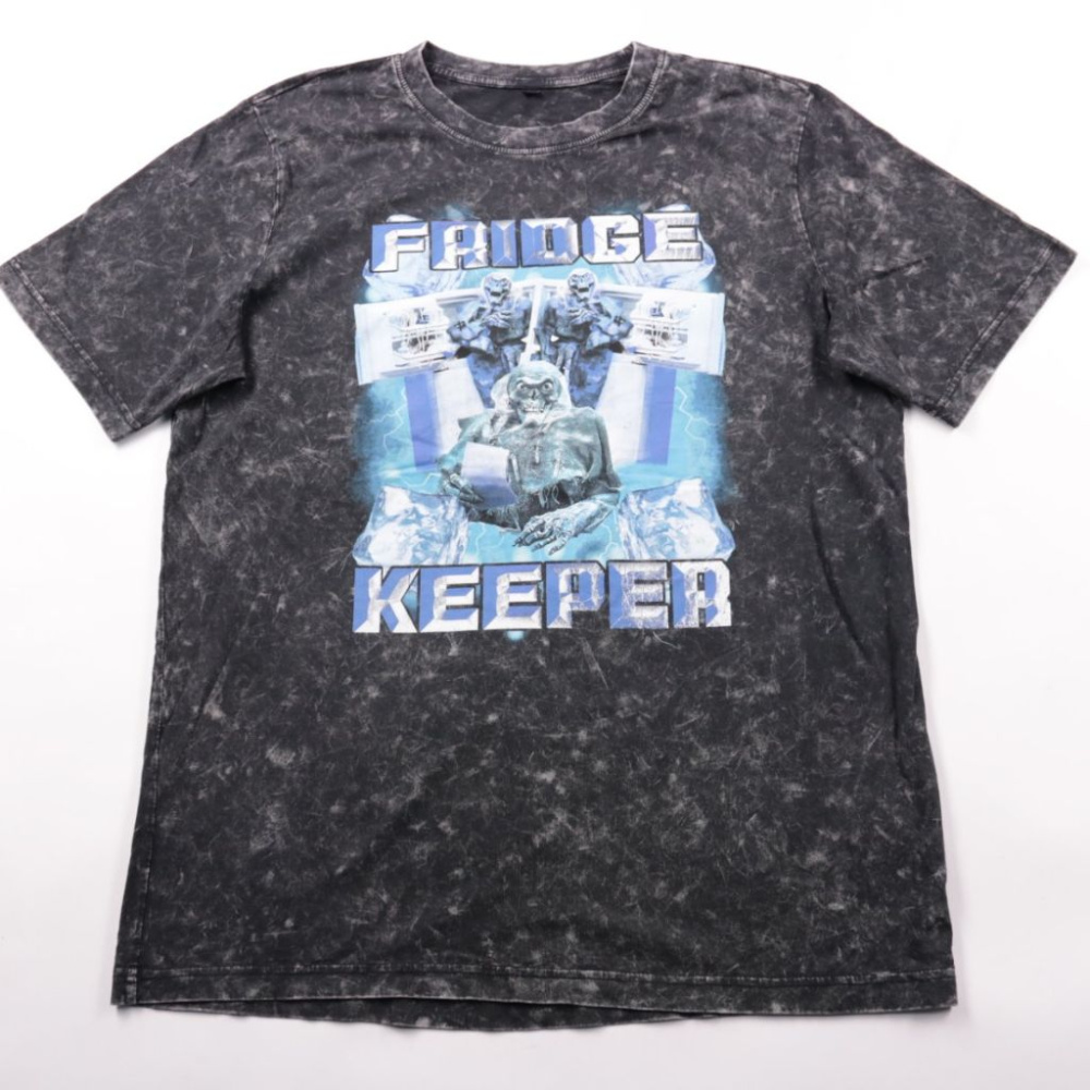 Футболка с принтом Fridge Keeper в серо-чёрном «варёном» (acid wash) окрасе. Подойдёт для повседневных образов и уличного стиля, хорошо сочетается с джинсами и шортами. Натуральный хлопок приятен к телу и хорошо дышит.
