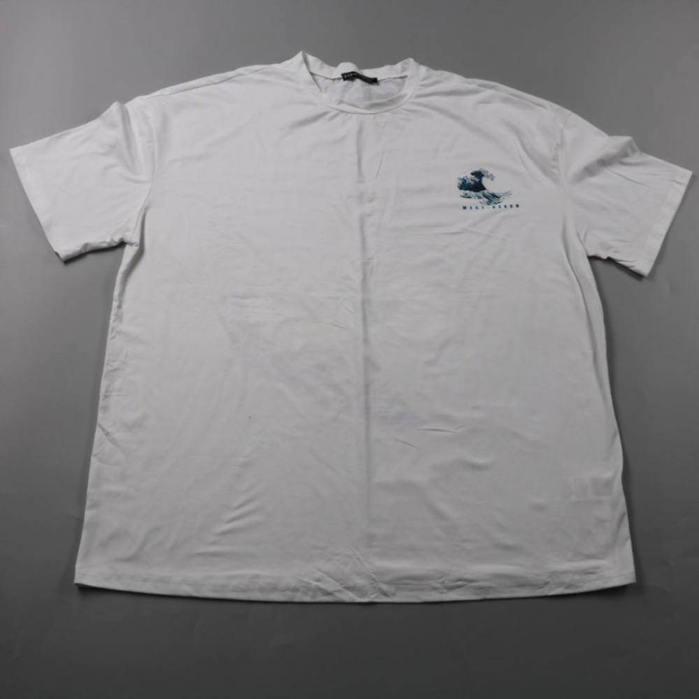 Футболка Shein белого цвета с небольшим принтом волны на груди и крупным принтом на спине. Подойдёт для повседневной носки и летних образов с джинсами или шортами. Материал с добавлением эластана тянется и комфортно садится по фигуре.