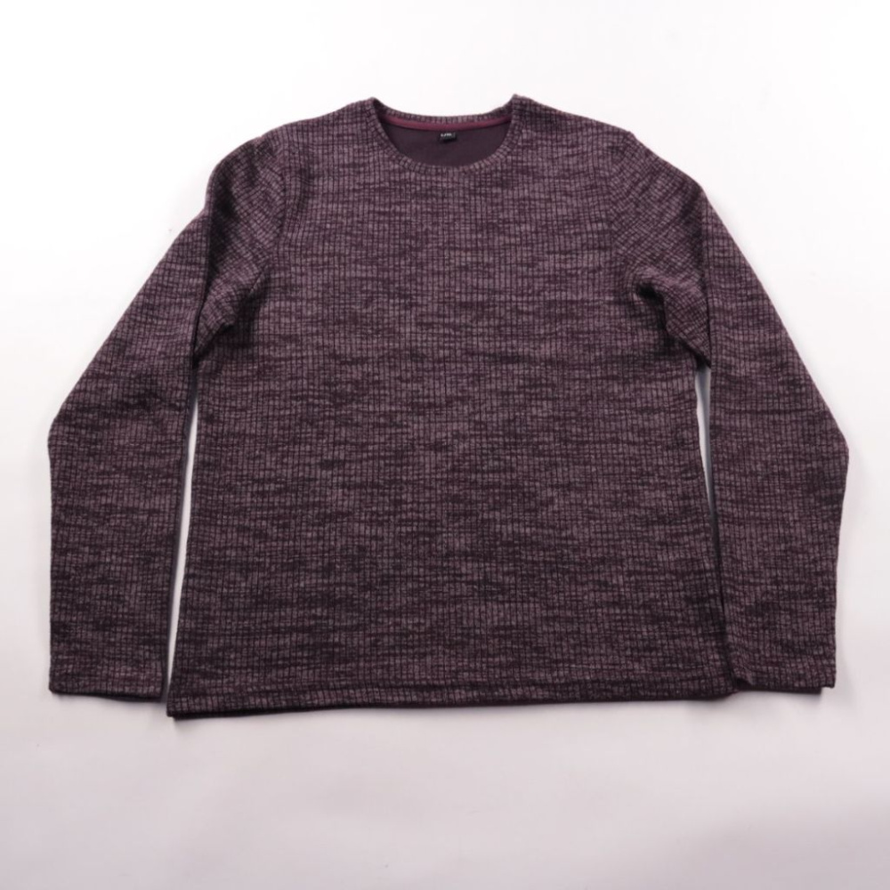 Мужской джемпер с круглым вырезом в меланжевом бордовом оттенке. Подойдёт для повседневной носки в прохладную погоду и как базовый слой под куртку. Материал с добавлением эластана слегка тянется и комфортно садится по фигуре.