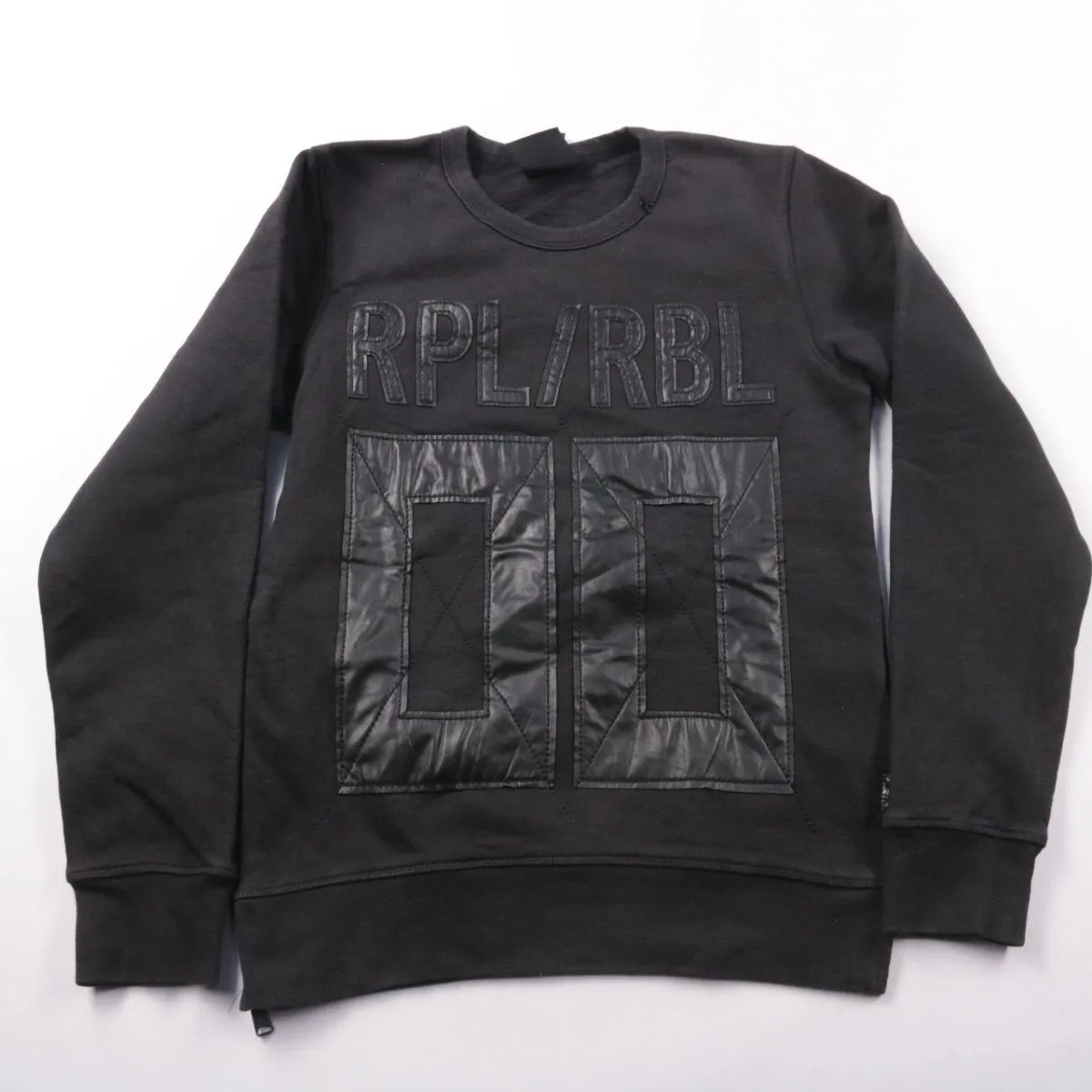 Мужской свитшот Replay чёрного цвета с объёмным принтом RPL/RBL и вставками спереди. Подойдёт для повседневной носки в прохладную погоду и для многослойных образов. Плотный хлопок приятен к телу и хорошо держит форму.
