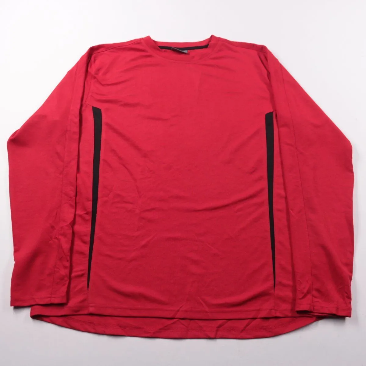 Мужской лонгслив Advanced Experience красного цвета с контрастными чёрными вставками по бокам. Подойдёт для повседневной носки и спорта в прохладную погоду, можно носить как базовый слой. Длинный рукав и лёгкий материал удобны в движении и не стесняют посадку.