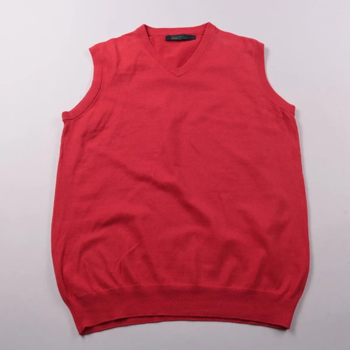 Мужской вязаный жилет Pedroais красного цвета с V‑образным вырезом. Подойдёт для офиса и повседневных образов, удобно носить поверх рубашки или лонгслива в прохладную погоду. Компактно складывается и не стесняет движений.