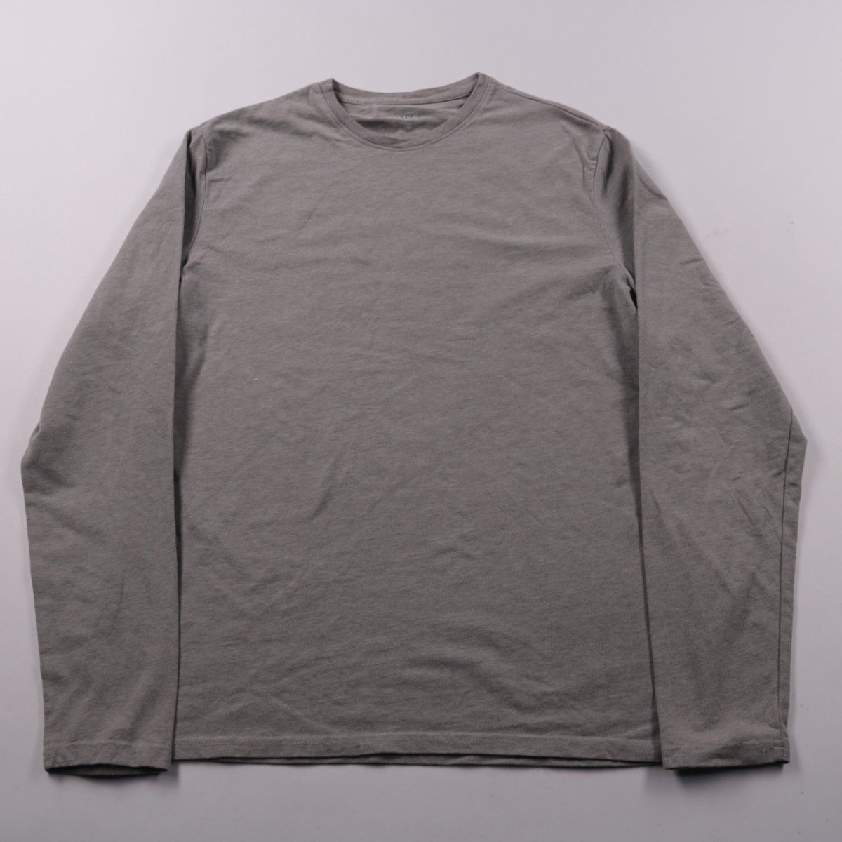 Мужской лонгслив M&S серого цвета, базовая модель с круглым вырезом и длинным рукавом. Подойдёт для повседневной носки и как первый слой под куртку или худи. Практичен тем, что легко сочетается с джинсами и спортивными брюками.