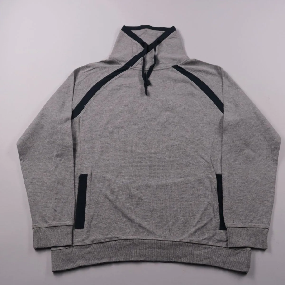 Серое худи без бренда с контрастными чёрными вставками и капюшоном на шнурке. Подойдёт для повседневной носки и прогулок в прохладную погоду, удобно комбинируется с джинсами и спортивными брюками. Мягкий хлопковый трикотаж с добавлением вискозы хорошо дышит и приятен к телу.
