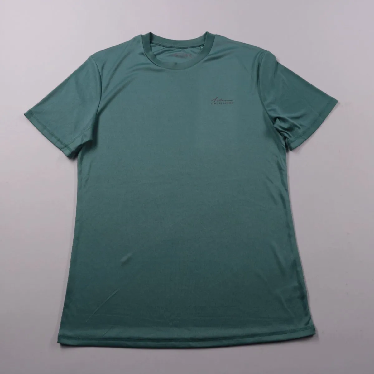 Мужская футболка George в цвете jade, с небольшим логотипом на груди. Подойдёт для повседневной носки и тренировок в тёплую погоду. Лёгкий полиэстер быстро сохнет и прост в уходе.