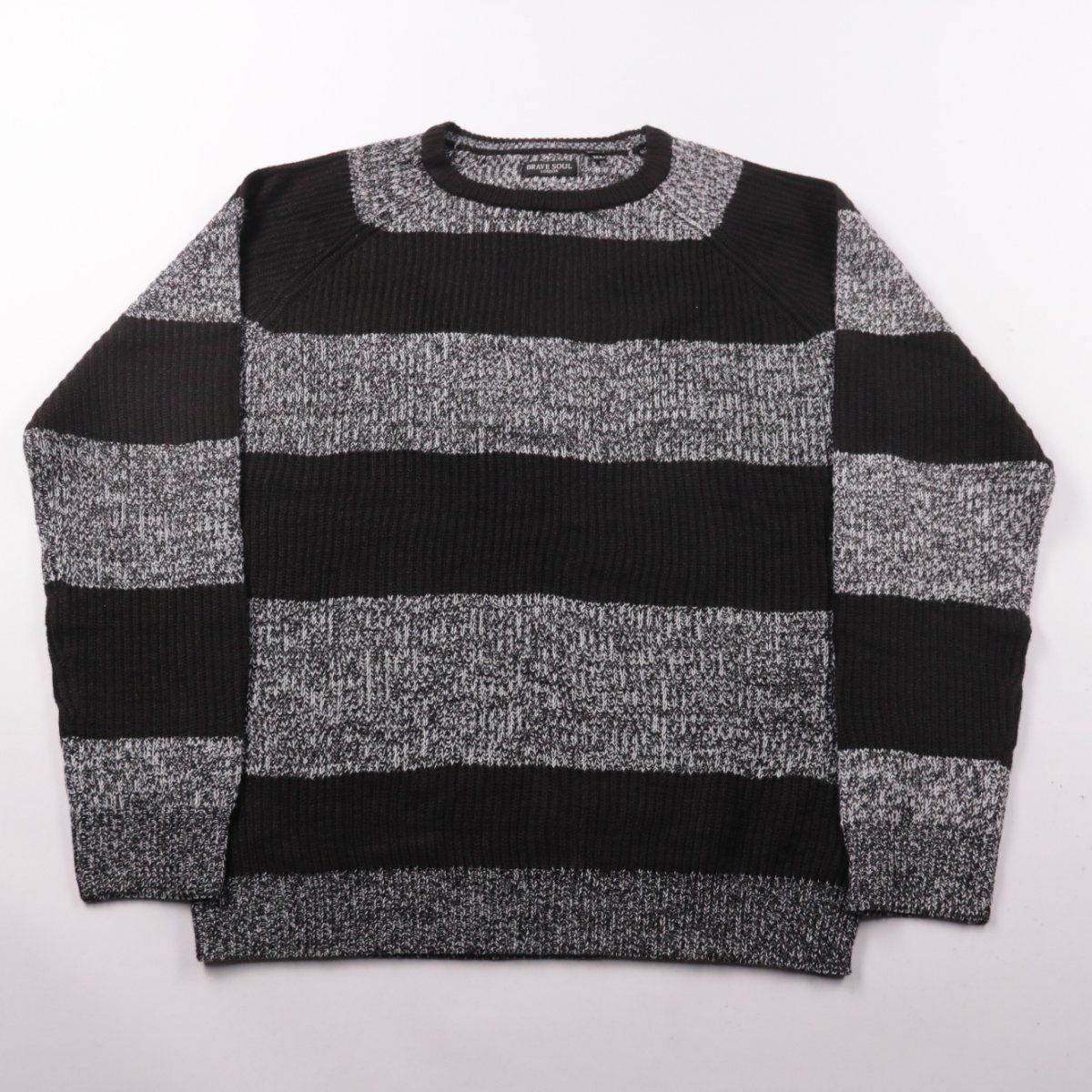 Мужской джемпер Brave Soul с круглым вырезом, в чёрно-серую полоску. Подойдёт для повседневной носки в прохладную погоду и как слой под куртку. Акриловая пряжа практична в уходе и быстро сохнет.