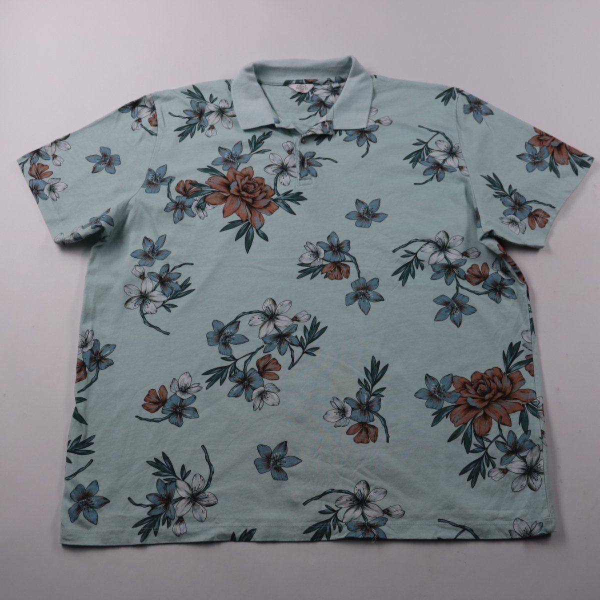 Мужское поло Next Regular Fit с коротким рукавом и цветочным принтом на мятно-голубом фоне. Подойдёт для летних прогулок и повседневных образов с джинсами или шортами. Натуральный хлопок комфортен в жару и хорошо пропускает воздух.