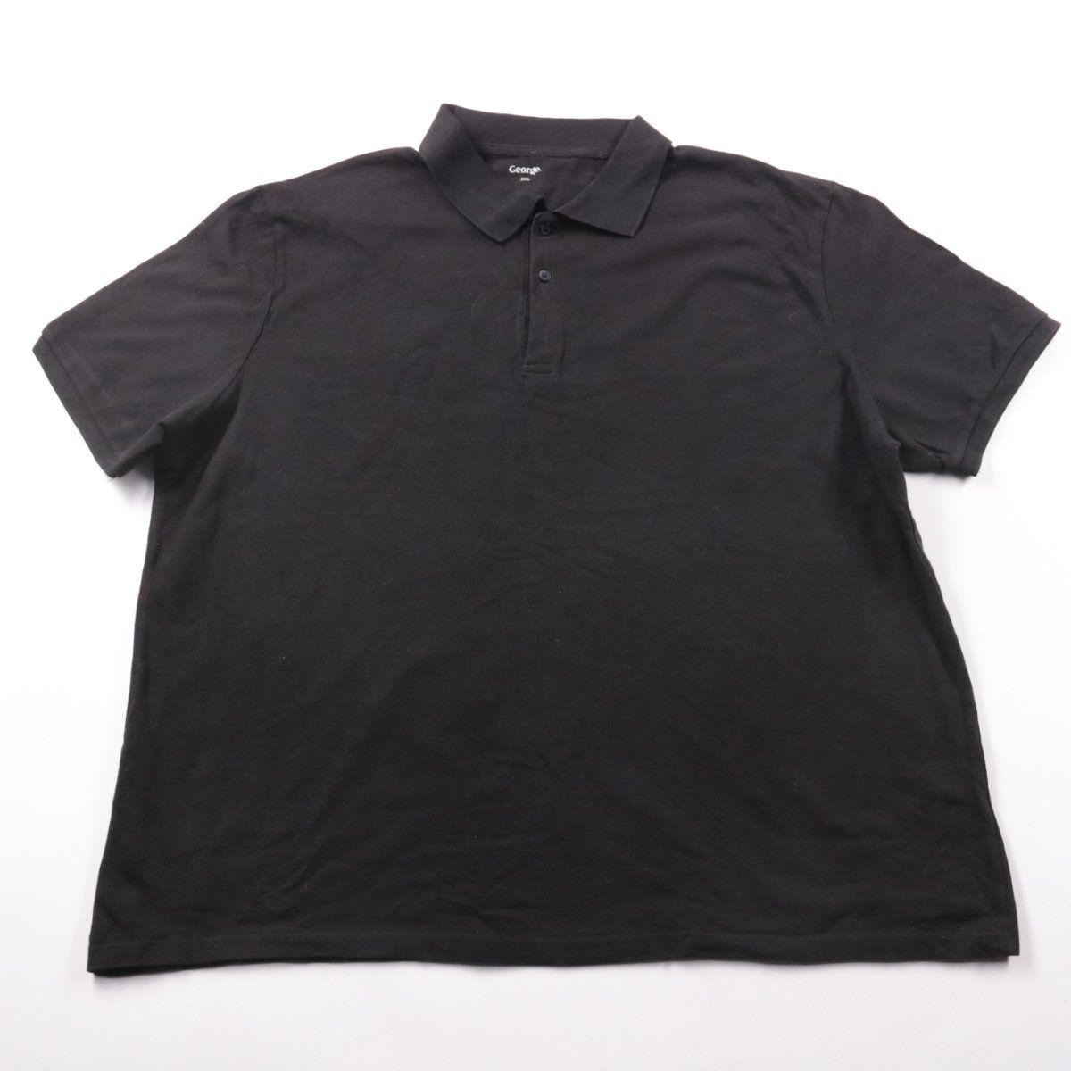 Мужское поло George чёрного цвета с классическим воротником и планкой на пуговицах. Подойдёт для повседневной носки и офисного casual-стиля. Натуральный хлопок хорошо дышит и комфортен в тёплую погоду.