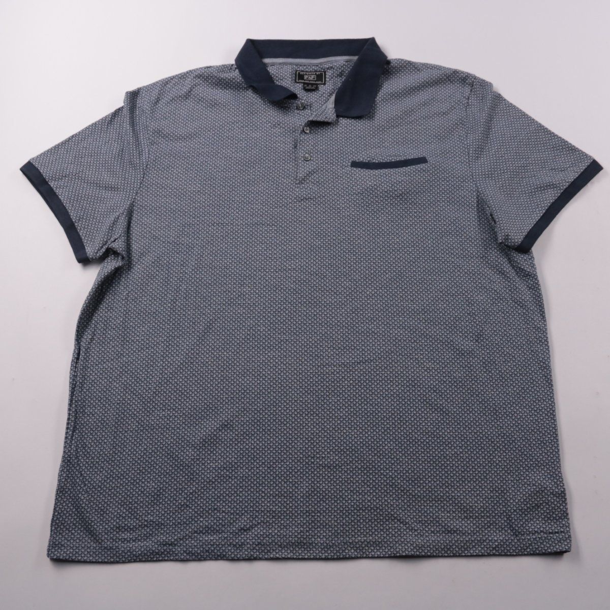 Мужское поло F&F с коротким рукавом и мелким геометрическим узором, с контрастным воротником и манжетами. Подойдёт для повседневной носки и casual-офиса, хорошо сочетается с джинсами и чиносами. Смесовая ткань проста в уходе и меньше мнётся.