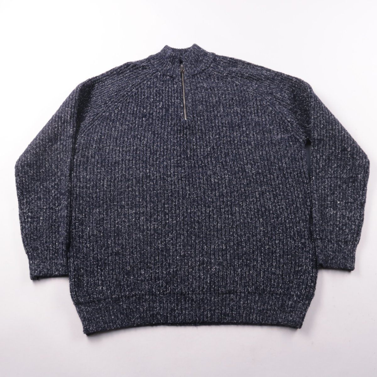 Мужской вязаный свитер George в тёмно-синем меланже с высоким воротником и короткой молнией. Подойдёт для повседневной носки в прохладную погоду и легко сочетается с джинсами или брюками. Рифлёная вязка тёплая и за счёт эластана немного тянется.
