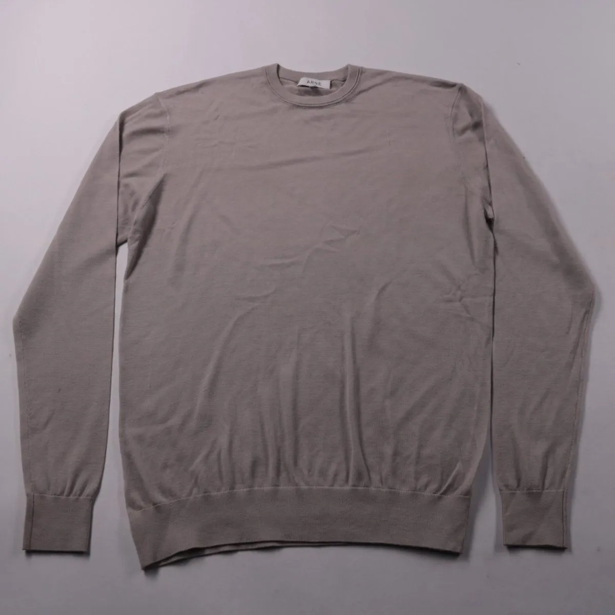 Мужской джемпер ARNE светлого серо-бежевого оттенка с круглым вырезом и манжетами в рубчик. Подойдёт для повседневной носки и офиса в демисезон, хорошо сочетается с джинсами и брюками. Мягкий трикотаж комфортно сидит и не сковывает движения.