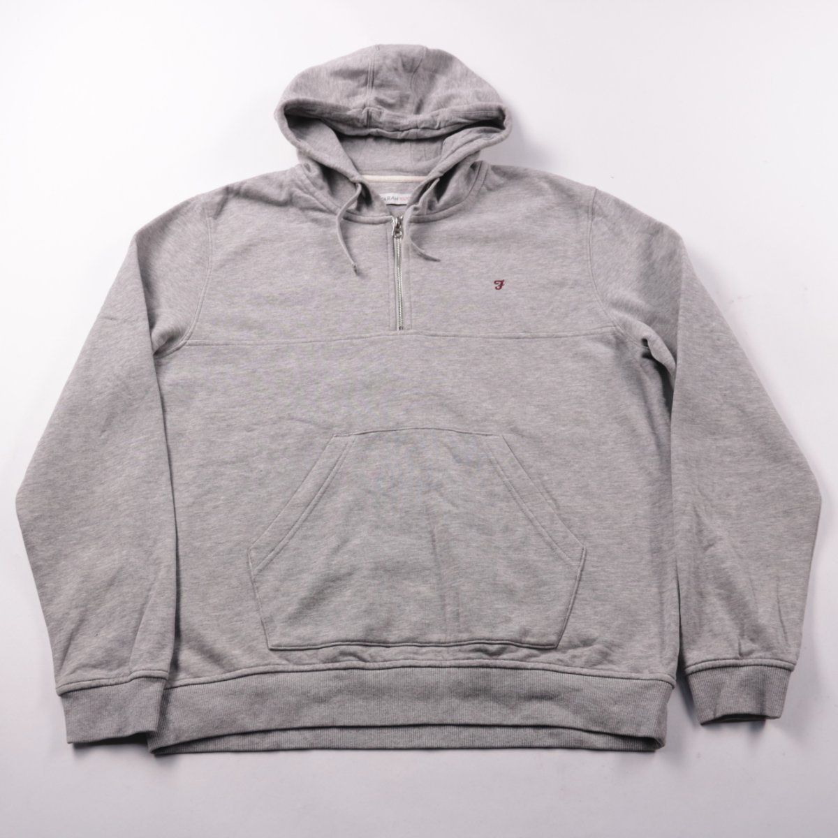 Мужское худи Farah 1920 серого меланжа с капюшоном, карманом-кенгуру и короткой молнией на груди. Подойдёт для повседневной носки в прохладную погоду и для поездок. Практично тем, что смесь хлопка с полиэстером меньше мнётся и проще в уходе.