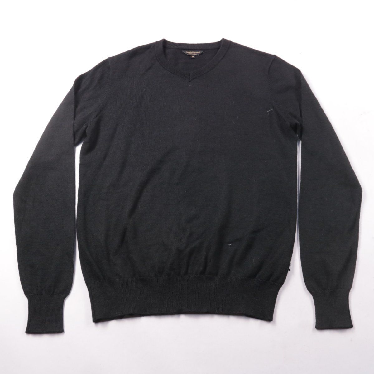 Мужской джемпер Douglas Hayward чёрного цвета с V-образным вырезом и манжетами на рукавах. Подойдёт для повседневной носки и офиса в прохладную погоду. Шерстяная пряжа хорошо сохраняет тепло и комфортна в носке.