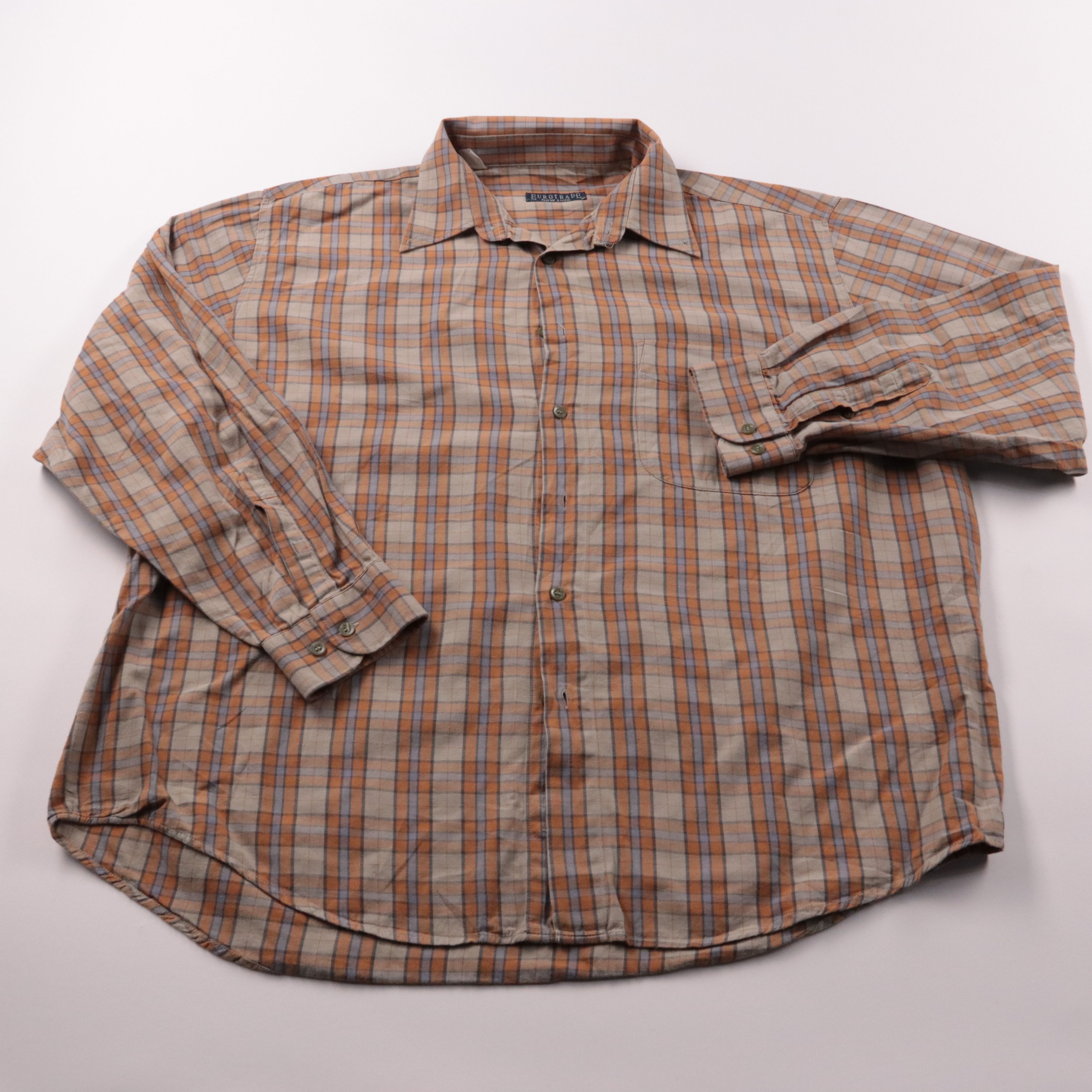 Мужская рубашка Eurotrade в клетку, с длинным рукавом и застёжкой на пуговицы. Подойдёт для повседневной носки и офиса в стиле casual, легко сочетается с джинсами или чиносами. Практичный хлопковый материал комфортен и хорошо дышит.