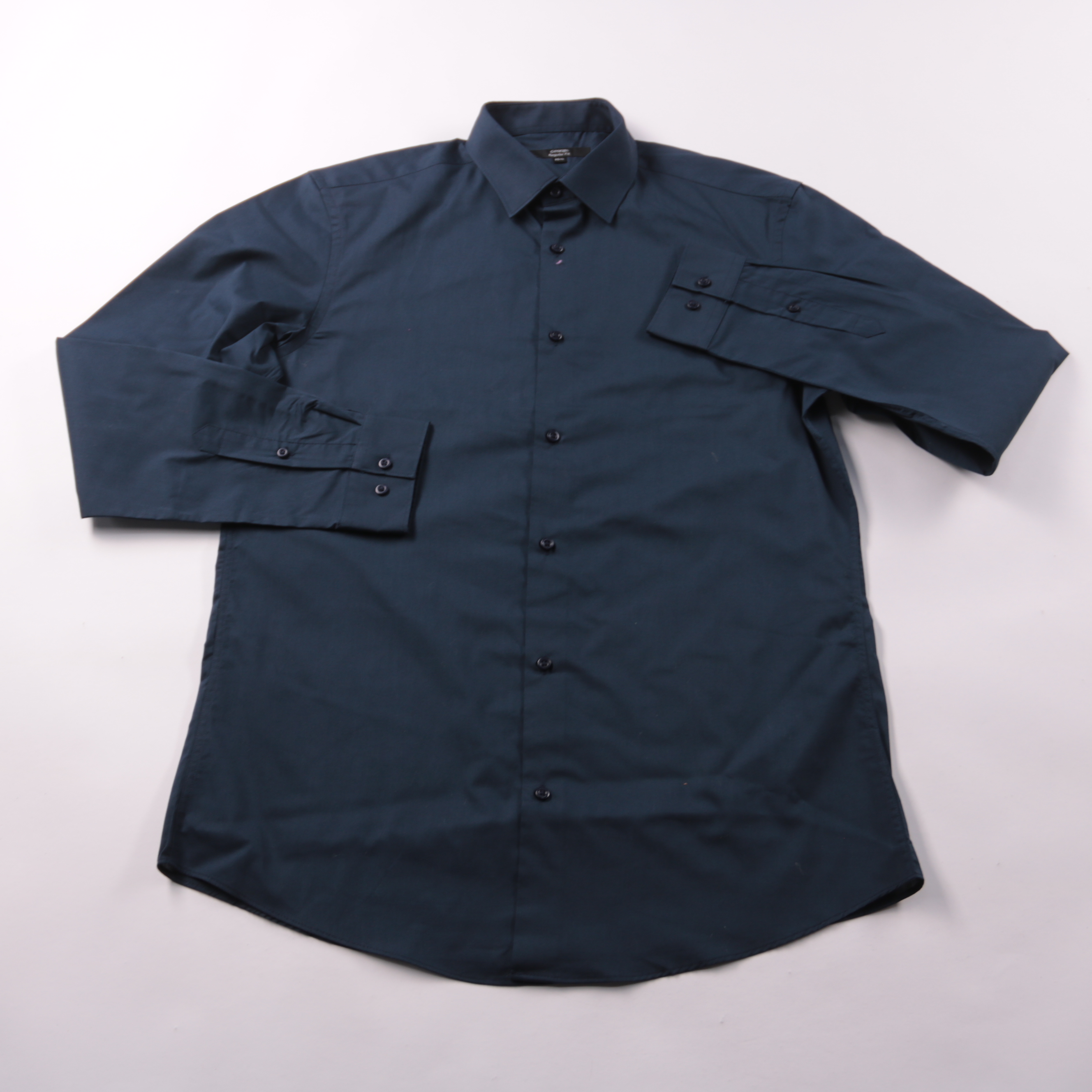 Мужская рубашка George Regular Fit тёмно-синего цвета с длинным рукавом и классическим воротником. Подойдёт для офиса, деловых встреч и повседневных комплектов с брюками или джинсами. Практичная смесовая ткань (хлопок с полиэстером) меньше мнётся и про...
