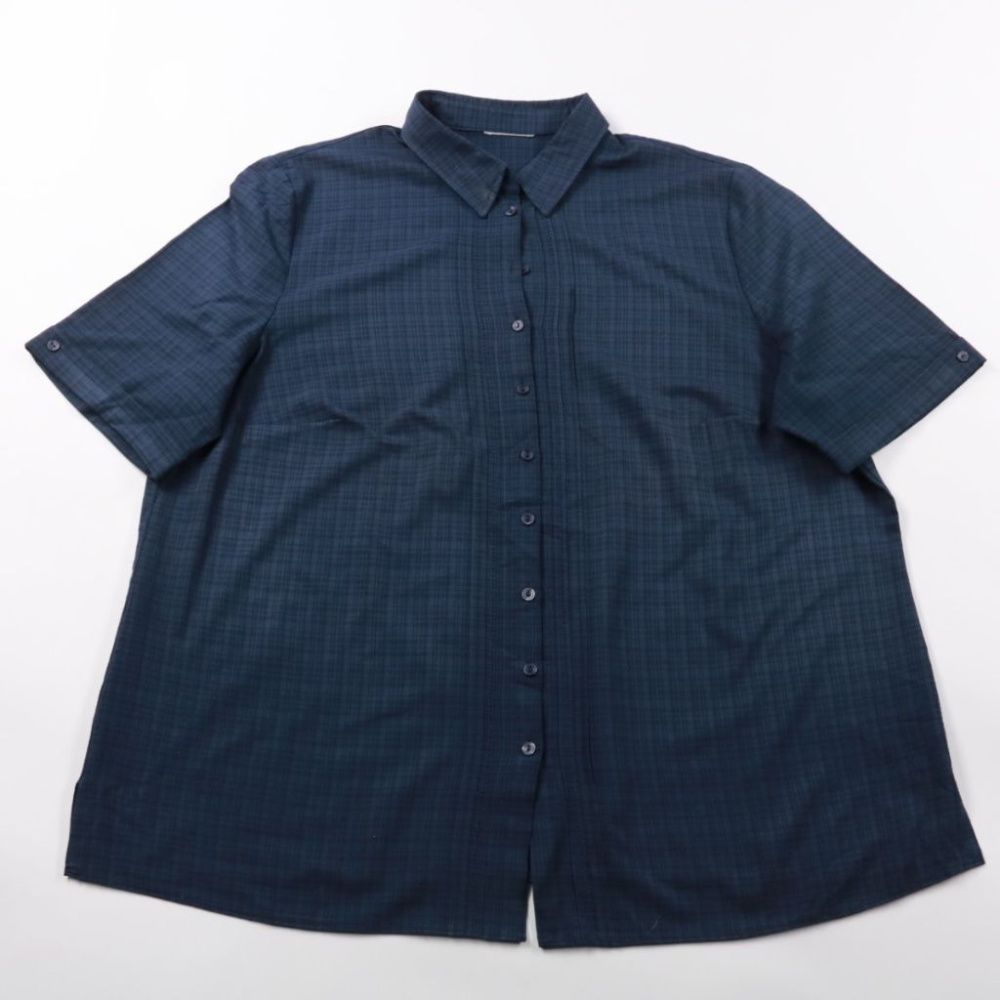 Мужская рубашка с коротким рукавом в тёмно-синем цвете и с мелким клетчатым рисунком, подойдёт для повседневной носки и офиса в тёплую погоду. Классический воротник и застёжка на пуговицы делают её универсальной для сочетания с джинсами или брюками. Пр...