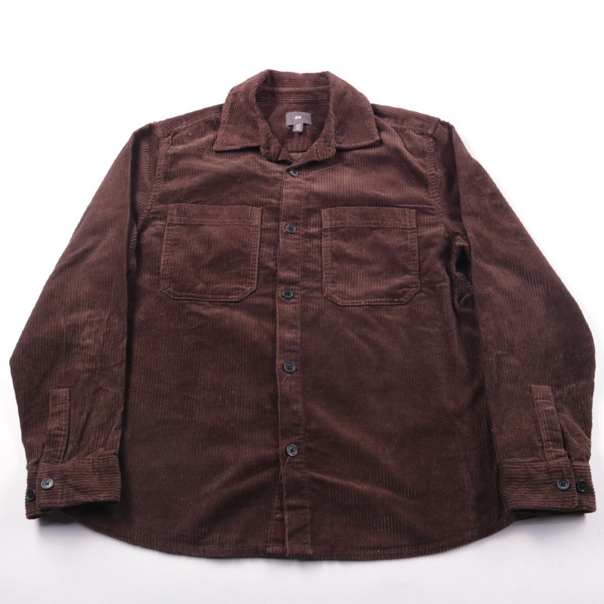Мужская вельветовая рубашка H&M из плотного хлопка, коричневого цвета, с двумя нагрудными карманами и застёжкой на пуговицы. Подойдёт для прохладной погоды как верхний слой поверх футболки или лонгслива. Ткань в рубчик практичная и хорошо держит форму.