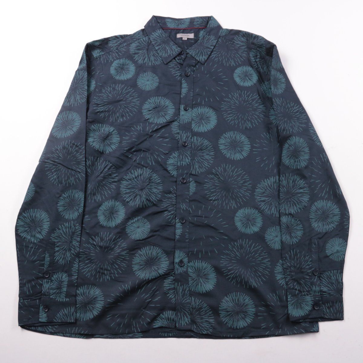 Мужская рубашка George из вискозы тёмно-синего цвета с бирюзовым принтом. Подойдёт для повседневных образов и офиса без строгого дресс-кода. Вискоза мягкая и хорошо дышит.