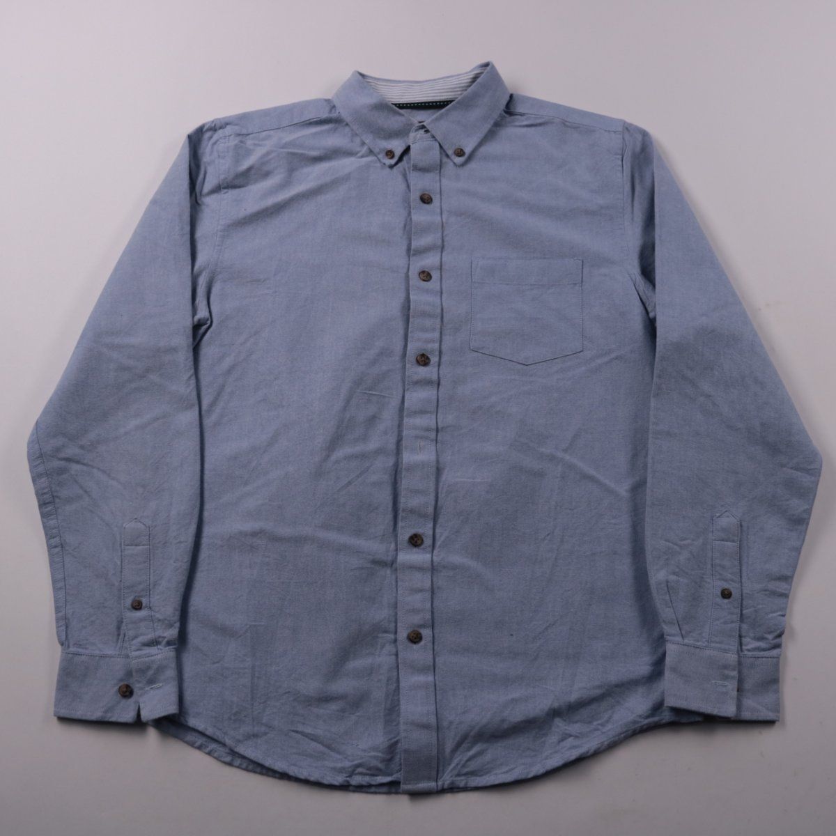 Мужская рубашка Primark Regular Fit из 100% хлопка, голубого цвета, с длинным рукавом и нагрудным карманом. Подойдёт для офиса и повседневных образов, хорошо смотрится и навыпуск, и под заправку. Хлопок дышит и комфортен в течение дня.