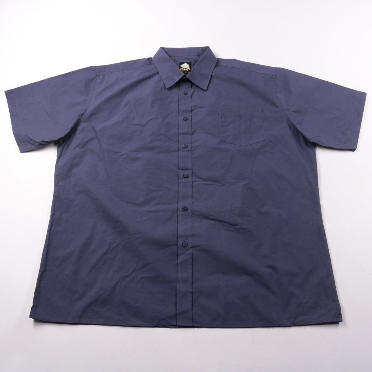 Мужская рубашка ØRN тёмно-синего цвета с коротким рукавом и нагрудным карманом. Подойдёт для повседневной носки и работы в тёплую погоду. Состав 65% полиэстер и 35% хлопок — ткань легче мнётся и быстрее сохнет.