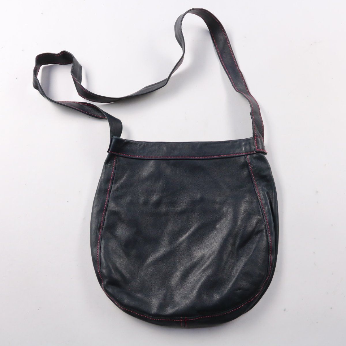 Сумка кросс-боди из чёрной кожи с контрастной красной строчкой и длинным ремнём. Подойдёт для повседневных выходов и прогулок, когда нужно взять с собой самое необходимое. Мягкий материал удобно носится и легко сочетается с базовым гардеробом.