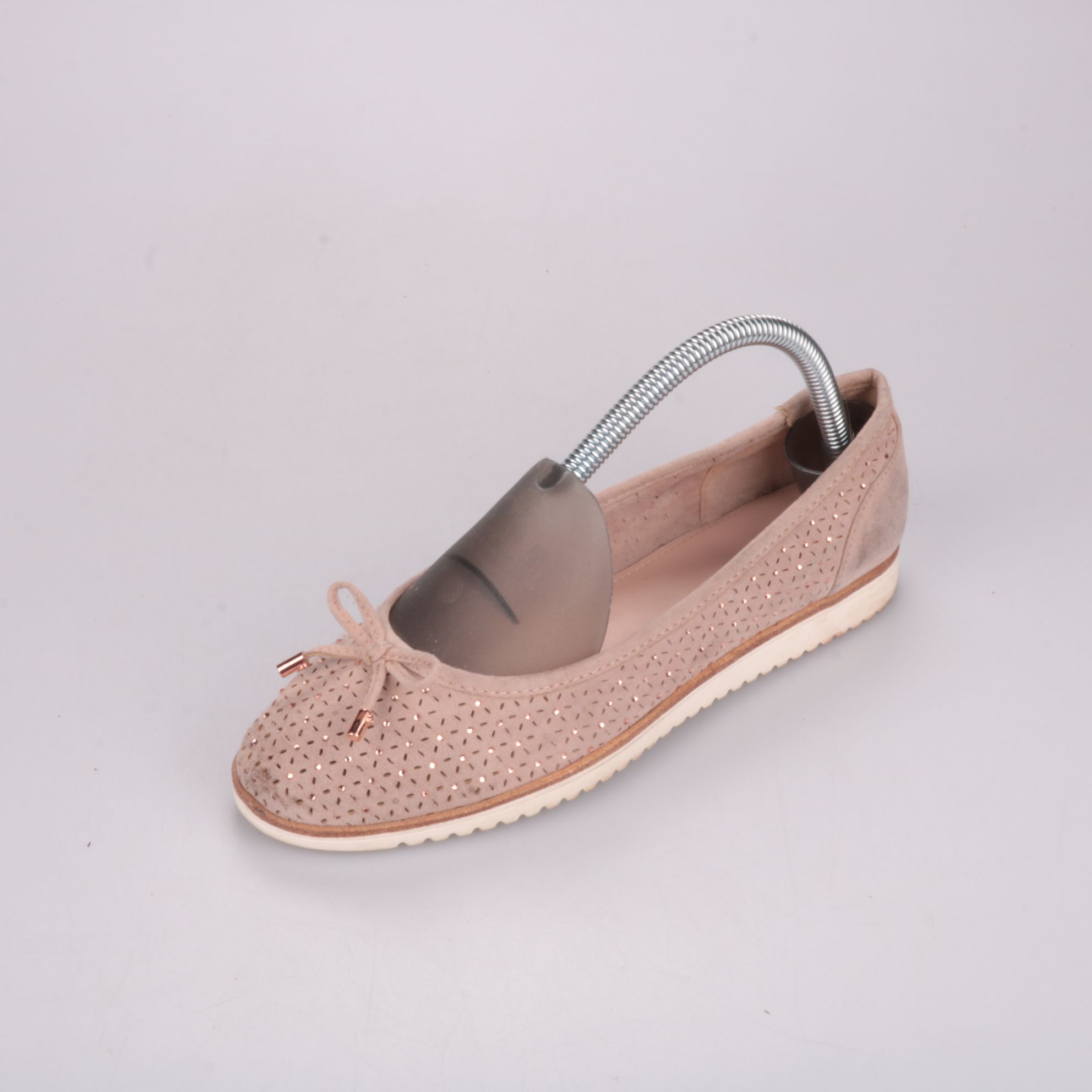 Женские балетки Graceland в нежном бежево-розовом оттенке с перфорацией и декоративным бантиком. Подойдут для повседневной носки летом и в тёплый демисезон, легко сочетаются с платьями и джинсами. Лёгкая гибкая подошва делает их удобными для длительных...