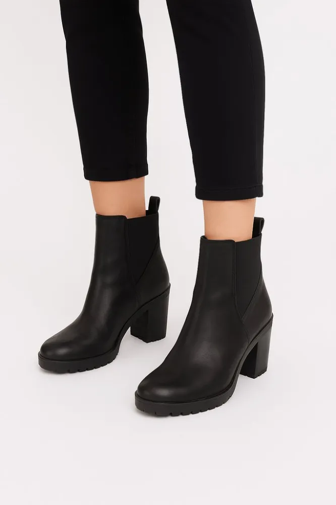 Женские ботильоны на устойчивом каблуке и тракторной подошве. Подойдут на каждый день в прохладную погоду и хорошо смотрятся с джинсами или платьем. Рельефная подошва даёт более уверенное сцепление на мокром асфальте.