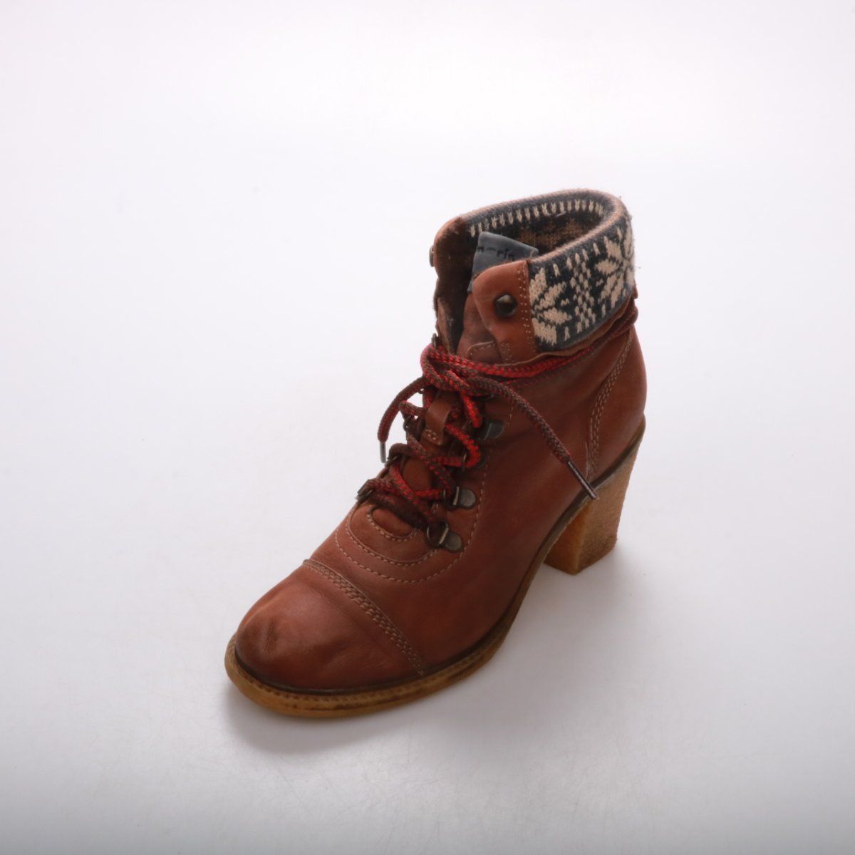 Женские ботильоны Tamaris из натуральной кожи в коричневом цвете, на устойчивом каблуке и со шнуровкой. Мягкий вязаный отворот с узором делает модель уютной и удобной для прогулок в прохладную погоду. Практичное преимущество — каблук-«столбик» и плотная подошва дают хорошую устойчивость.
