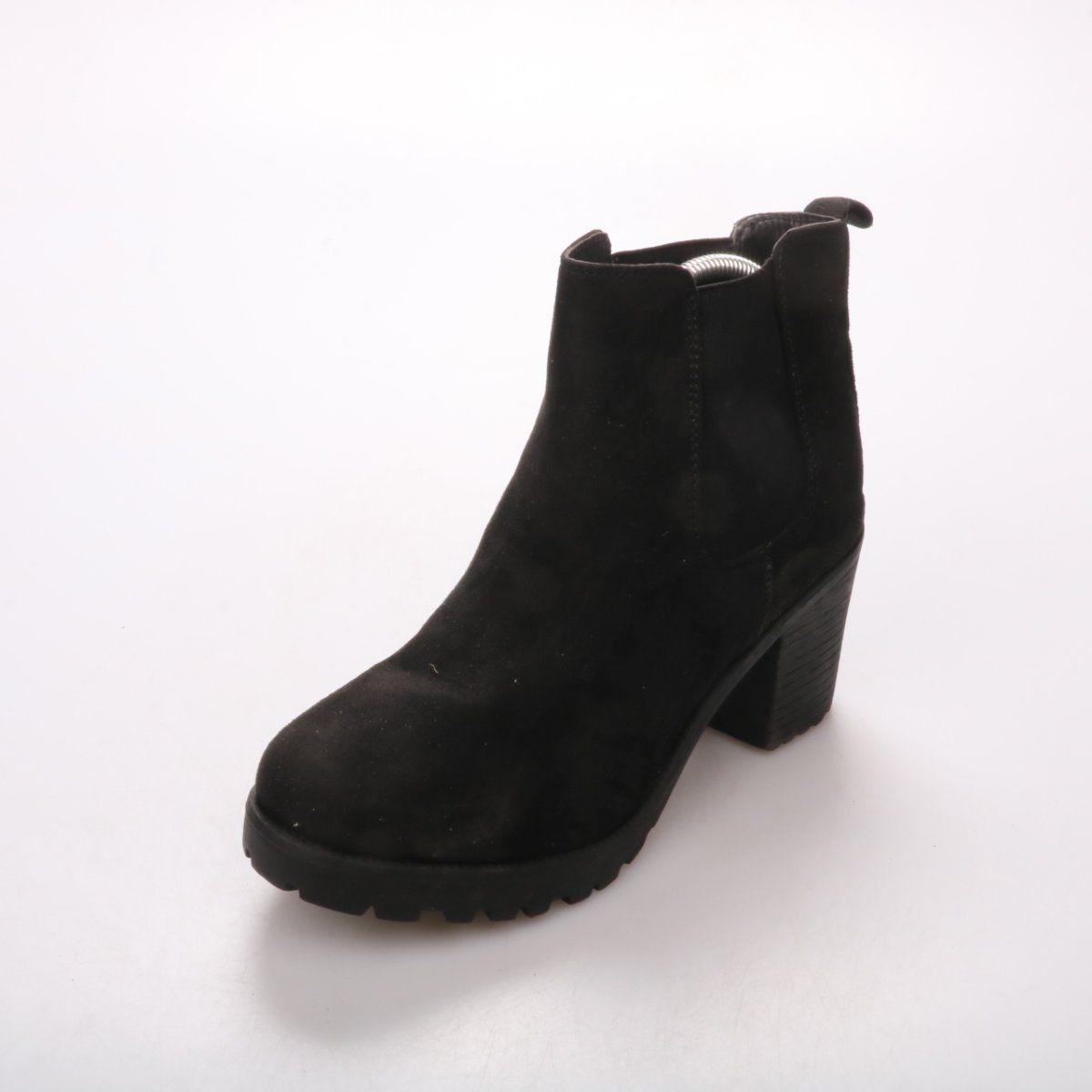 Ботильоны Katy чёрного цвета из мягкого текстильного материала под замшу на устойчивом каблуке. Подойдут для повседневных образов в демисезон и на сухую погоду. Рельефная подошва даёт хорошее сцепление и удобна для прогулок.