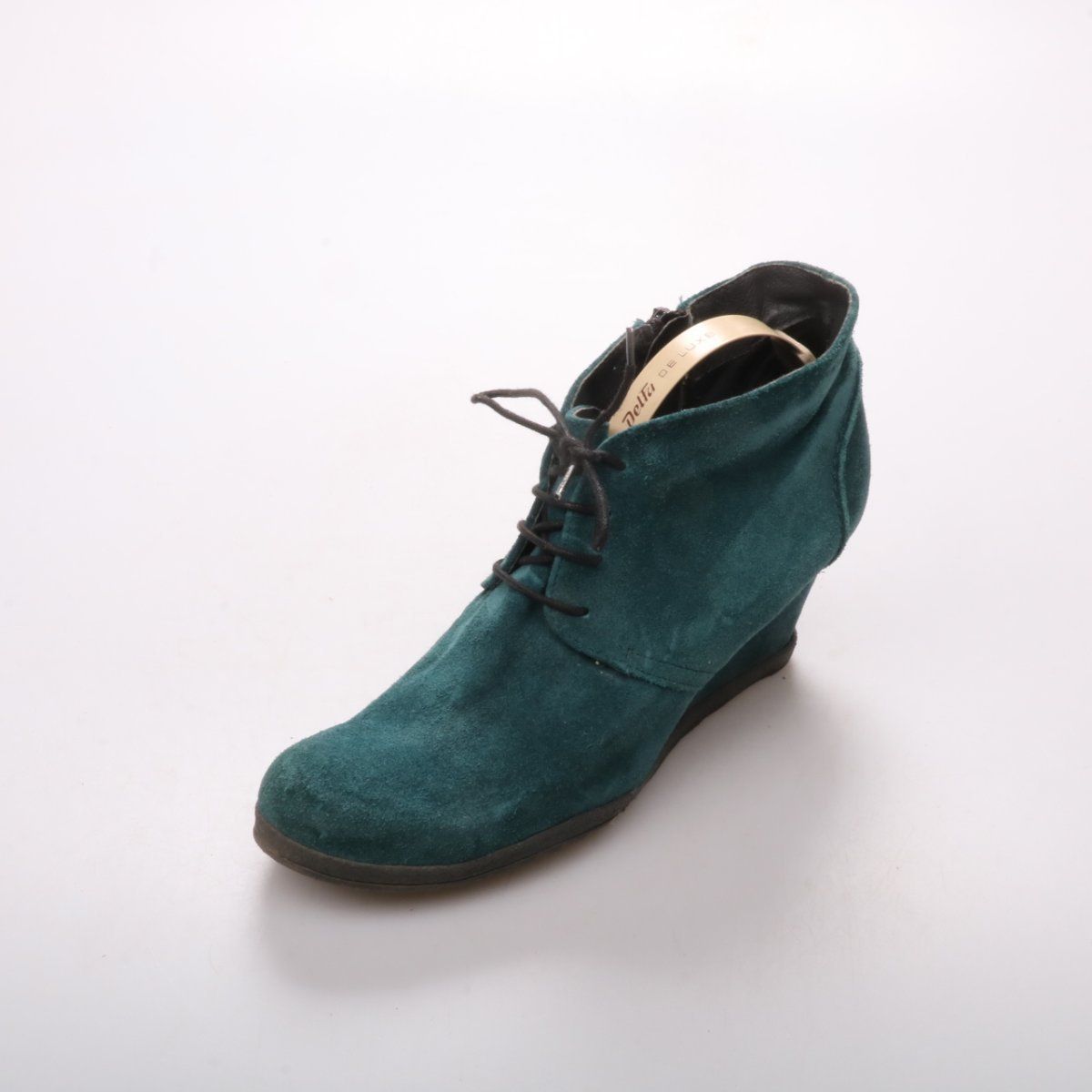 Замшевые ботильоны Gianni Gregori на танкетке, со шнуровкой спереди и молнией сбоку. Подойдут для повседневных образов в межсезонье, хорошо смотрятся с джинсами и платьями. Рельефная резиновая подошва даёт устойчивость и меньше скользит.