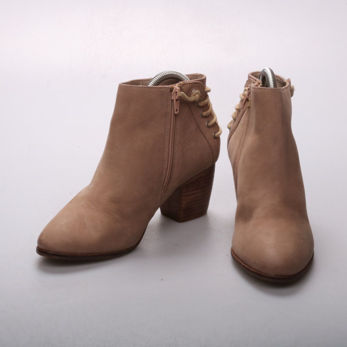 Женские ботильоны Sacha бежевого цвета на устойчивом каблуке, с боковой молнией и шнуровкой сзади. Подойдут для повседневных образов в межсезонье и в офис. Практичное преимущество — каблук устойчивый и удобен для ходьбы.