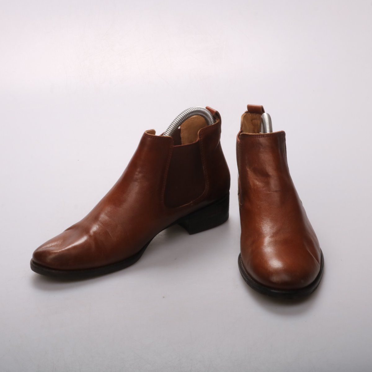 Женские ботильоны Gabor из гладкой коричневой кожи с эластичными вставками по бокам (челси) и невысоким устойчивым каблуком. Подойдут для повседневных образов в межсезонье и на работу. Удобно быстро надевать за счёт вставок и петли сзади.